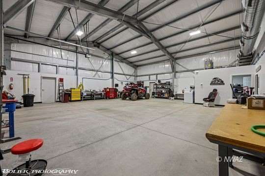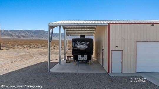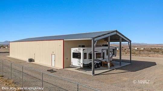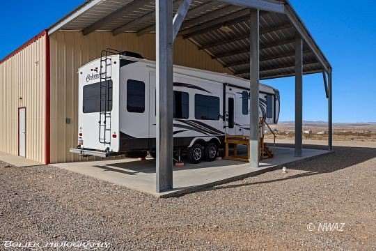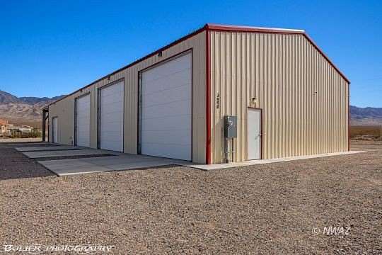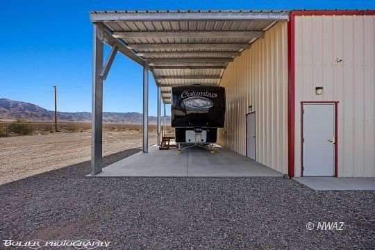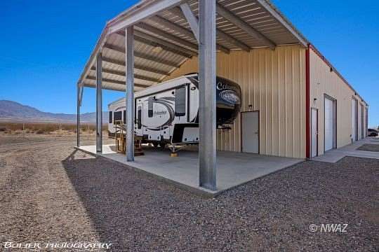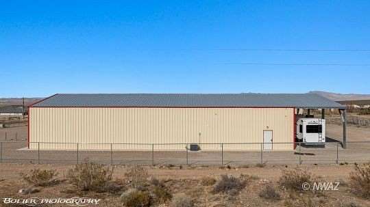 Looking for that perfect place to house all your toys and have your own private shop or maybe even a business opportunity? Prime location on the corner of Scenic Blvd and Elbow Canyon. Built in 2021, this steel building is 4587 sq. ft measuring 120'x45' feet with 18' ceiling heights. Divided into three distinct areas: 1800 sf. well equipped workshop, climate-controlled, two man doors and a 10' X 10' insulated automatic overhead door. OSB board lining for insulation & protection, half bathroom. Adjacent space includes washer and dryer hookups. High-output LED lighting throughout both shops, sealed concrete floors, 5-ton HVAC, Rapidair line system installed throughout. Area #2: is a 2,700 sq. ft. shop, accommodating large RVs: Three 14' x 14' insulated automatic overhead Martin doors, with 20' wide bays. 8' x 14' pallet rack shelving, new 7.5 Horse Power Jet air compressor. Additionally, there is an integrated covered RV space w/ 50 amp service, sewer clean-out, water bib, LED lighting. Extras include: Ubiquity security system, rolling gate with half of parcel fully fenced, new 550 ft. well, septic system. Adjacent 1.06 acres also available. CLICK ON VIDEO LINK FOR MORE INFO