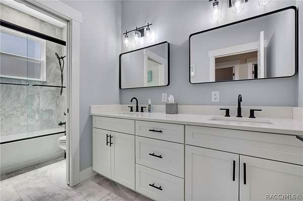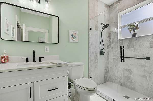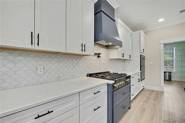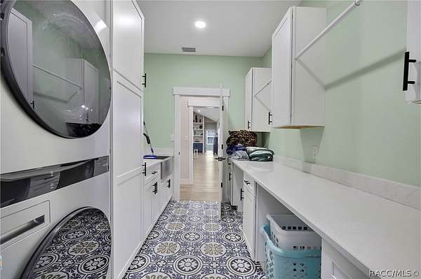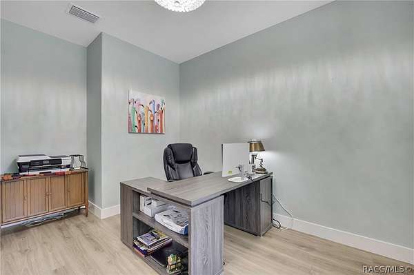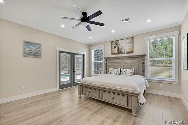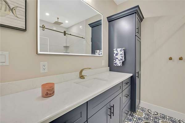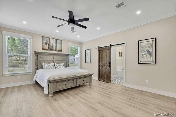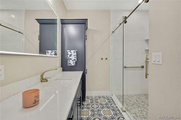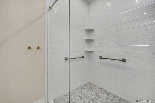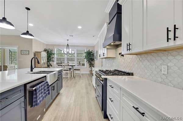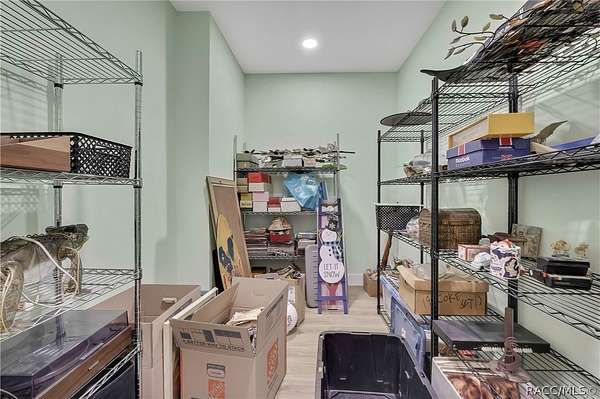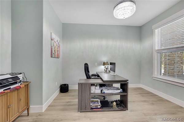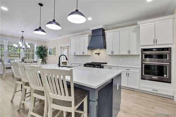 PRIVATE CUL-DE-SAC ESTATE ON 3.07 ACRES IN PINE RIDGE | Resort Pool + Designer Finishes Experience refined country luxury in this exceptional custom estate at the end of a quiet cul-de-sac in the sought-after Pine Ridge community. Set on 3.07 private acres of mature trees, this stunning home offers over 4,100 sq. ft. under roof, blending elegance and modern functionality-a true nature-lover's dream. A circular paved driveway centered around a landscaped garden creates a striking first impression. The property is prewired for a future electric gate and features professional landscaping leading to double garage doors. Inside, an open-concept design with 4 bedrooms, 4 bathrooms, and a versatile office features designer finishes and vaulted ceilings. The main living area is anchored by a gas fireplace with modern white brick, wainscoting, and custom built-in cabinetry with towering bookshelves. The chef's kitchen is the heart of the home, showcasing custom cabinetry, an oversized island, high-end black stainless appliances, and a gas cooktop with a custom hood. A large walk-in pantry includes a convenient "grocery door" leading directly to the garage for effortless unloading. The primary suite is a true retreat, featuring barn door entry to a spa-inspired bath with a glass-enclosed rainfall shower, jetted soaking tub, and dual vanities. The expansive walk-in closet connects directly to a well-appointed laundry room with an LG tower washer/dryer and utility sink. Thoughtfully designed for flexibility, the home includes a private guest/mother-in-law suite with its own walk-in closet and attached bath. A secondary flex space near the primary wing serves as an ideal mudroom or hobby space with its own garage access. Efficiency meets comfort with a tankless water heater, 250-gallon underground propane tank, and two A/C systems. The extra-long custom garage accommodates full-size pickup trucks on both sides and offers direct access to the fenced yard. Step outside to a resort-style oasis featuring a heated saltwater pool and spa within a screened enclosure. An extended patio roof creates a massive covered outdoor living area, complete with a pool-side bathroom and dedicated outdoor shower. Approximately 1/2 acre is fully fenced for pets, while the remaining 2.57 acres offer peaceful wooded surroundings frequent with native wildlife. Two outbuildings with underground electric provide flexibility for storage or a workshop. Located in Pine Ridge, Citrus County's premier equestrian community, residents enjoy miles of riding trails and a community equestrian complex. This property offers the space, privacy, and upscale finishes luxury buyers demand, while remaining close to shopping, dining, and the Nature Coast's best boating and golf. This isn't just a home-it's a sanctuary.