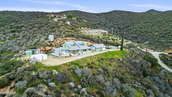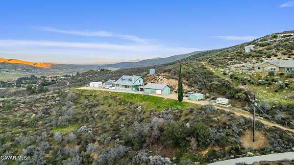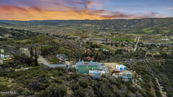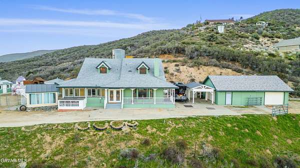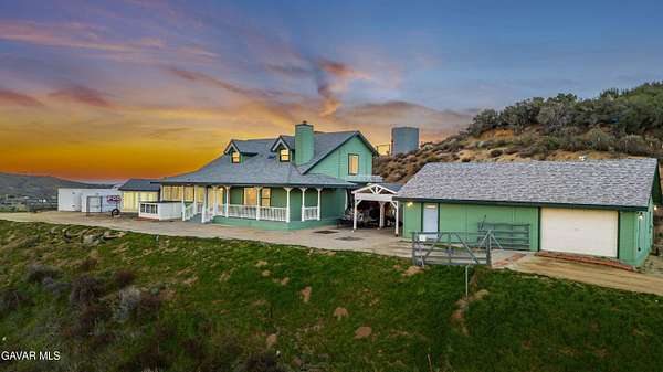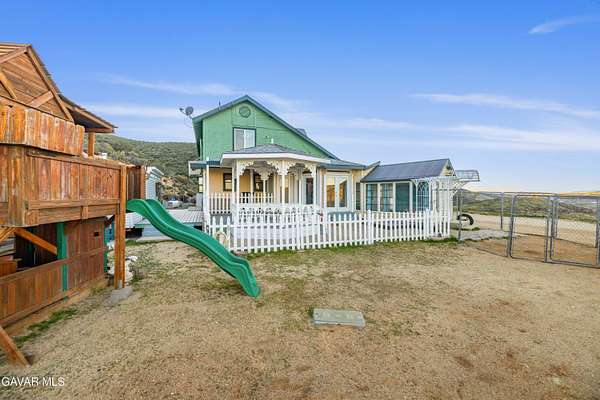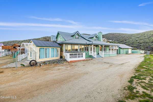 Stunning views from this one of a kind Victorian farmhouse located on over 2 acres in Leona Valley. Out front you will find a covered porch perfect for enjoying the mountain view and a double stain glass entry. The living room offers plenty of space for entertaining and a cozy fireplace. The kitchen features beautiful custom oak cabinetry with NO wasted space, pantry and connection to the formal dining room. This custom home features 3 bedrooms, 2.5 bathrooms, an office/bonus room, an enclosed sunroom and so much more! Each bedroom features a large closet, personal sink, and gorgeous views. Downstairs you will find a spacious laundry room with tons of storage, room for an extra refrigerator, and a laundry chute. Each bathroom has a commercial grade toilet that hangs off the wall for easy cleaning. The entire upstairs was designed to become a guest house with its own entry. Outside you will find tons of parking, RV access with hookups and a dump station, a carport, a 864 sqft garage/workshop and Five 220 volt outlets set up for car charging. You will also find an adorable gazebo, a large child's playset, a chicken coop, an insulated greenhouse and a mobile home. This home is a MUST see!