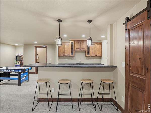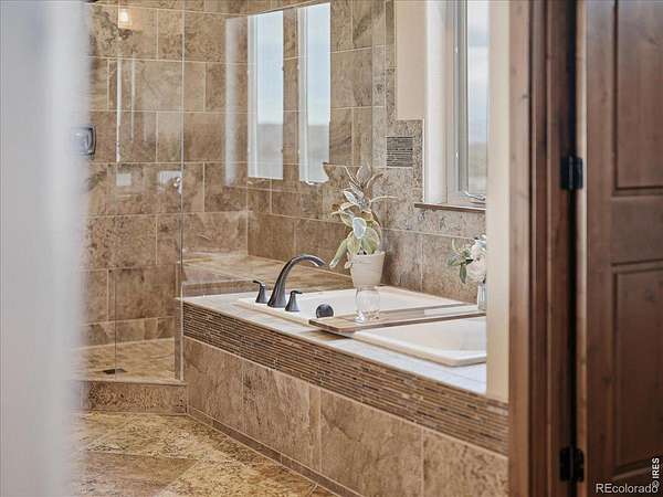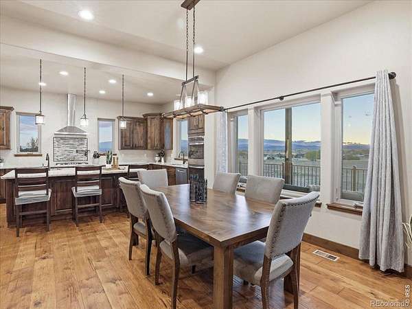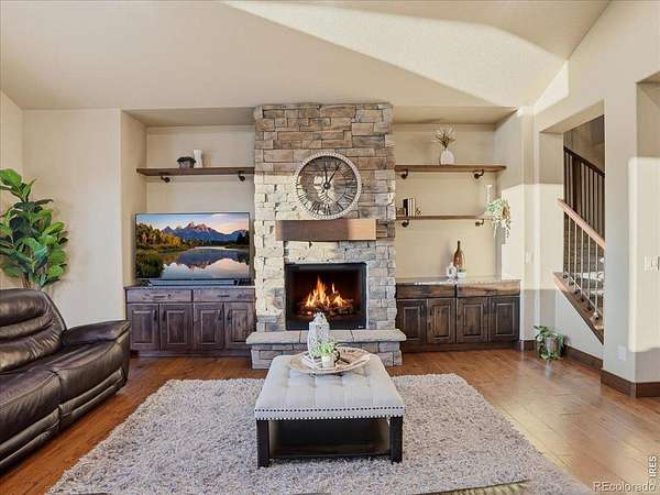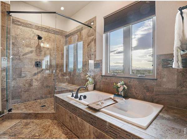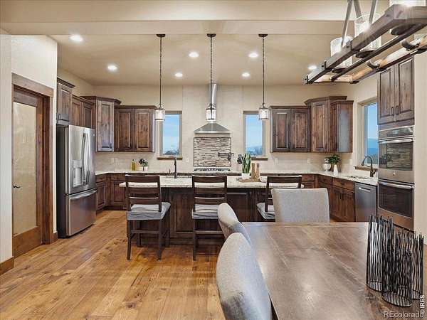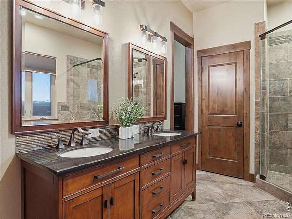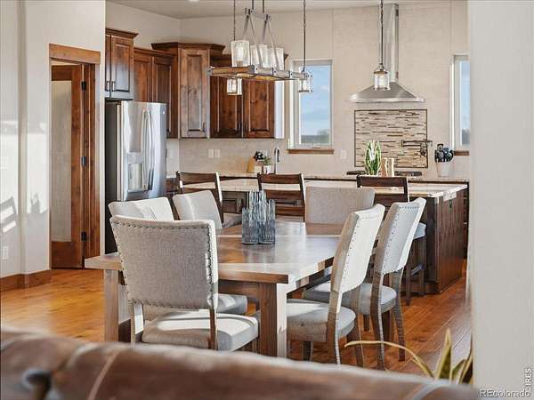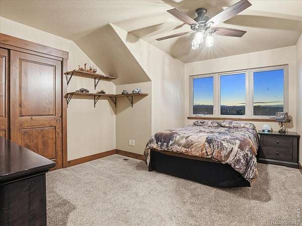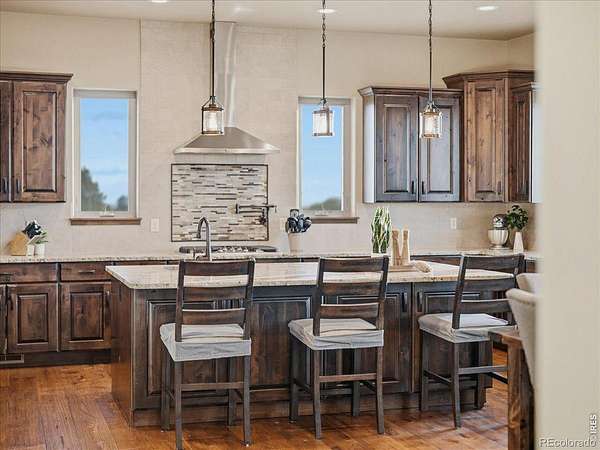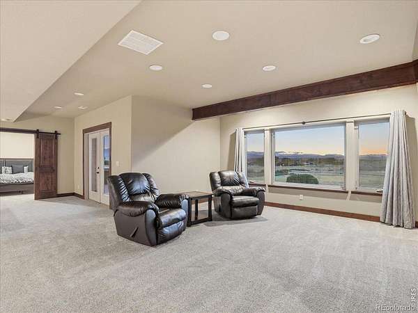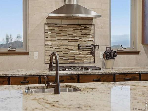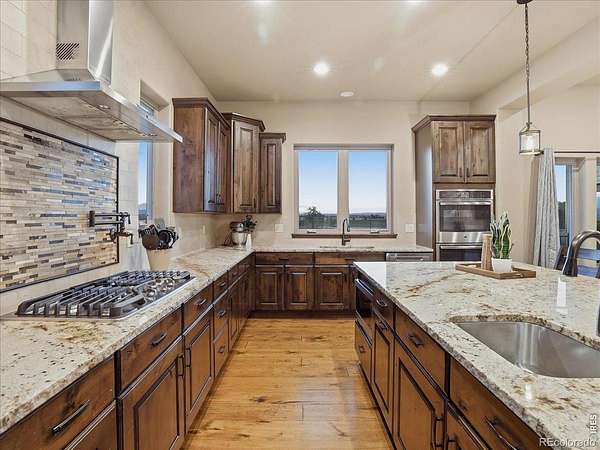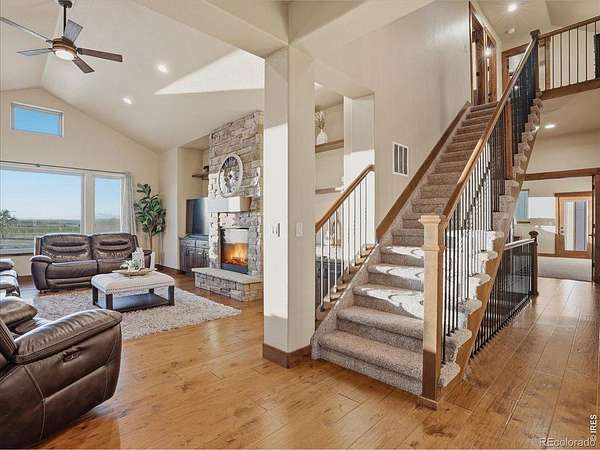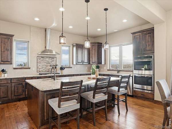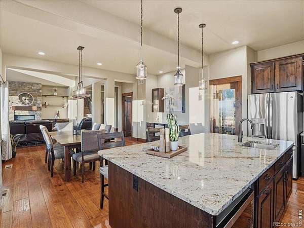 Belmont Farms - 5.66 acres - mountain views - walkout basement - 8-car garage - 6 baths - covered deck - hot tub- Set on 5.66 acres in Belmont Farms, 39917 Hilltop Circle pairs luxury finishes with open land, panoramic mountain views, and exceptional garage space. The setting is a standout, with the best views captured from the covered deck, lower patio, and from inside of the home, creating a true Colorado backdrop for daily living and outdoor entertaining. Inside blends luxury and comfort with a main-floor primary suite, dedicated study, open-concept kitchen, dining, and living spaces, plus an upper level with two additional bedrooms, full bathroom, and a loft. The kitchen is designed for both function and style with a large island, gorgeous slab countertops, custom cabinetry, gas cooktop, double wall ovens, pot filler, and picture windows that bring the landscape inside. Wood floors, solid wood doors, and a floor-to-ceiling stone fireplace add depth and character throughout the main level. The walkout basement expands the living space with two more bedrooms, a family room, rec room, kitchenette, sitting area, and substantial unfinished storage, offering flexibility for guests, hobbies, or multi-use living. Outdoor spaces are equally impressive, with a covered deck, expansive patio, included firepit, built-in grill, and hot tub, all positioned to enjoy the wide-open surroundings and Front Range views. One of the most distinctive features is the oversized 8-car garage with its own half bath, giving this property rare capacity for vehicles, recreational equipment, workshop use, or additional storage. Enjoy Luxury inside and acreage outside, with views from everywhere! You can also add an additional shop if you need more work space. Campers are allowed to park by the home. Bring your Toys!