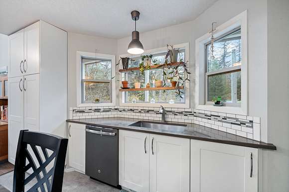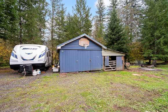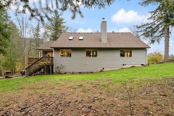 Nestled on a serene 6.22-acre property, this exquisite 3 bed 2.5 bath home offers a peaceful 1977 sq ft retreat above the Washougal River with the perfect blend of natural beauty, privacy, seclusion, & modern comfort. Every room offers breathtaking views, connecting you with nature at every turn. The kitchen boasts quartz countertops & a large, elegant island, with all appliances included, making meal preparation a delight. The primary suite on the main floor invites you to unwind with a deep soaking tub, updated double vanity, & beautiful tile floors. Step outside & discover a large, fenced garden, several flourishing fruit trees (list provided), & a driveway lined with vibrant colorful rhododendrons. A stunning elderberry tree graces the landscape by the large pond, creating a picturesque setting by the water's edge. Additionally, a 17 x 24 outbuilding provides ample space for your hobbies & storage needs, bonus office/nook upstairs & loft which overlooks the living room, ensuring that you have the perfect blend of functionality. This home offers an idyllic & enchanting haven for those seeking a harmonious connection with nature & a taste of rural living as you enjoy the exquisite mountain views & sunsets! Tax status, Timber land. Buyer to do own due diligence. Approx. 30 min to airport