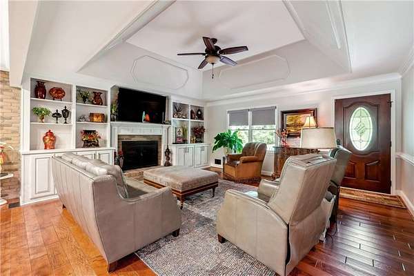 - Bookcases, Crown Molding, Double Vanity, Tray Ceiling(s), Walk-In Closet(s)