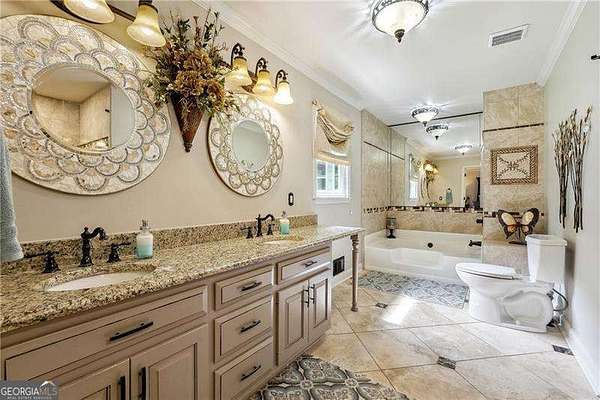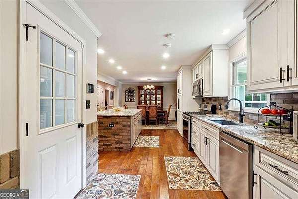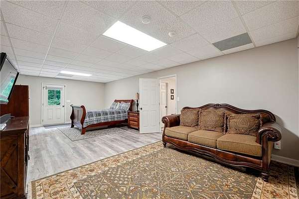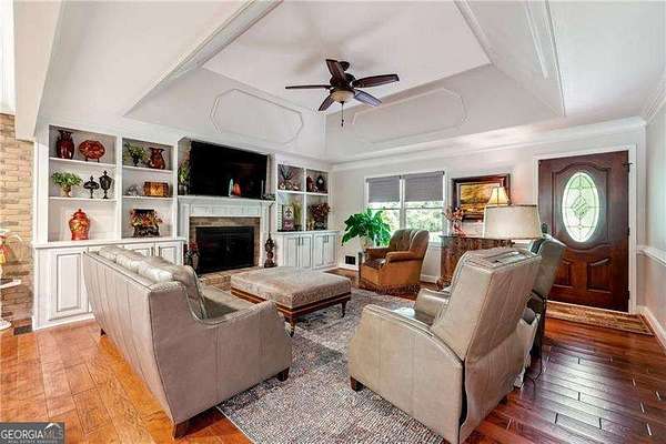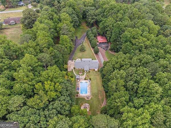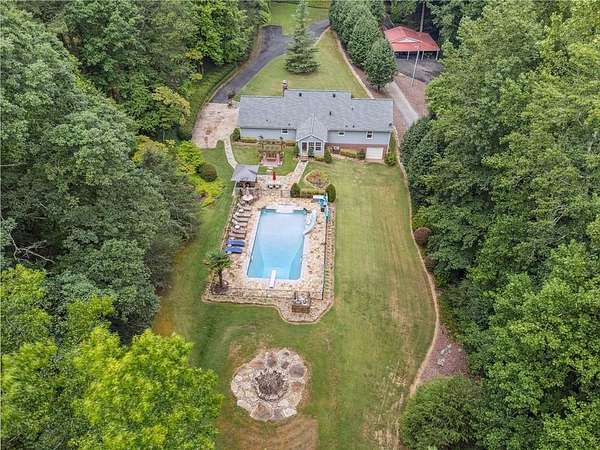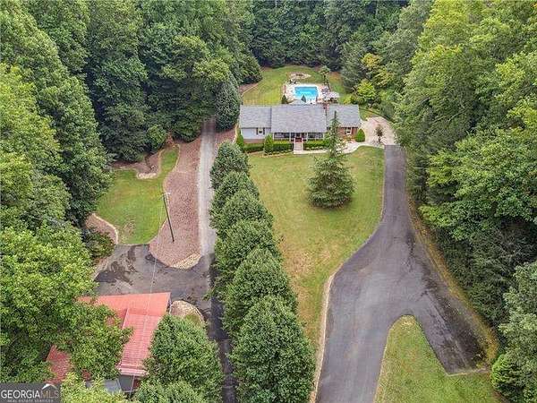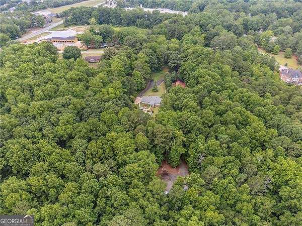 Delight in a serene oasis nestled in one of Georgia's most coveted locations! This 4 bed, 3 bath ranch with finished basement rests on over 6 acres and perfectly marries luxury with privacy, while keeping all the conveniences of suburb life. As you step inside, a beautifully updated interior greets you. Beautiful hardwoods, custom built-ins, trey ceilings and cozy fireplace make up the main living area. The spacious open floor plan and its thoughtful layout make entertaining a breeze. Your new kitchen boasts a large island, granite counters, stainless steel appliances, elegant backsplash, and plenty of cabinetry. Adjacent to the kitchen, envision starting each morning with a warm cup of coffee as you curl up in the sunroom and gaze out over the immaculately landscaped backyard. Retreat into a large owner's suite highlighted by crown molding and gorgeous hardwoods. Indulge in the large soaking tub in the spa-like ensuite; complete double vanities and large shower. Custom built-ins within the walk-in closet ensure plenty of storage space. Your secondary bedrooms are just as spacious and airy as the rest of the home and share a bathroom with beautiful updated tile work along with California Closets in all but one closet. Downstairs, discover a fully finished basement with full bathroom and additional bedroom. This space could easily become a rental suite with a little extra work, or create the perfect game room! Step outside into meticulously landscaped backyard and enjoy warm summer days in the pool. Plenty of room to roam the property on 4-Wheelers, dirt bikes and more! Store all your toys in either of the two garages on the property, large one is a steel 3 bay and is heated and insulated, perfect for RV, car storage or workshop with drains for washing. Located in coveted Forsyth County, near the newly built Publix at Tribble Market Crossing. Quick access to shopping and dining. Zoned for the critically acclaimed West Forsyth High School. Book your showing today and come enjoy this rare slice of heaven in Cumming! Potential Commercial zoning would make for perfect live/work situation, assisted living, etc.
