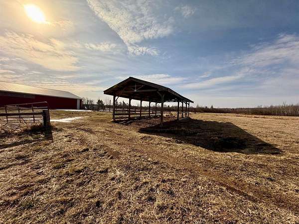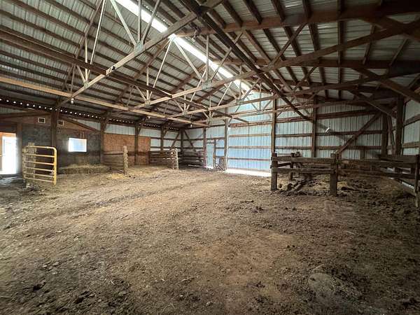 Picture-Perfect 160-Acre Stately Farmhouse – A Rural Dream Come True!! Welcome home to this impeccably maintained 160-acre farmstead where timeless charm meets modern comfort. From the moment you arrive, you'll fall in love with the stately farmhouse that serves as the heart of this remarkable property. Start your mornings on the east-facing front porch, soaking in breathtaking sunrises, and end your evenings on the back deck taking in sweeping western views of your property as far as the eye can see. Inside, the home offers five farm-style bedrooms and two bathrooms thoughtfully laid out across two floors. The main level features a convenient bedroom, updated bathroom with tiled shower, a generous living room, a separate dining room, and a large kitchen appointed with granite countertops and updated appliances — perfect for gathering after a long day on the land. Laminate Flooring in the entry and kitchen and warm hardwood floors flow throughout, and a large mudroom keeps the mess where it belongs. Upstairs, four additional bedrooms and large three-quarter bathroom provide plenty of space for family or guests. Rest easy knowing the home has been fully updated where it counts, including updated mechanicals, drain tile, sump pump, electrical, forced air furnace and air conditioning, a new five-bedroom mound septic system, and an updated drilled well. Outside, the land is as functional as it is beautiful. The property is fully fenced with three rotational pastures and two Ritchie waterers, making it move-in ready for livestock or horses. A detached heated two-car garage offers everyday convenience, while the impressive 48x96 pole building is a true standout — complete with an entry room, interior pens, an inside Ritchie waterer, and the remaining half of the building is dedicated to equipment or hay storage. There is a loafing shed for livestock and a charming hen house with a bonus deer stand on stilts rounding out the outdoor amenities for the hobby farmer and hunter alike. The land itself is a wonderful mix of rolling highs and lows, featuring a creek, two ponds, fruit trees, a garden area, and nearly 40 recently opened acres to the northeast creating more open spaces. With road frontage on all four sides of the 160 acres, access couldn't be more convenient. This is the property you've been waiting for — truly ready to move in and start living the life you've imagined.