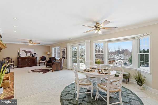 Welcome to this stunning ranch style home, conveniently located on a picturesque 5.6-acre lot in Hamilton. Perfect location with all paved private driveways and no HOA! You'll be amazed by the amount of care and updates that have been put into the property. Updated Anderson windows and French doors give this home bright natural lighting in every room. Well maintained Solid Oak Hardwood floors are through the foyer and formal dining room, hallways and bonus room/den. Huge Dining Room with wood burning fireplace, beautiful rustic chandelier, beautiful solid cherry dining furniture with table seating for up to 12, two china cabinets and matching buffet that conveys to new owner. The bright large eat-in kitchen with tile floors, features custom cabinetry, large pantry, smaller utility closet, full extension pull out drawers throughout, 48" KitchenAid side by side refrigerator, double GE Profile Ovens, 5 burner induction cooktop built into the tiered island with granite countertop, and a pull out cabinet shelf with interior plug built for KitchenAid Mixer. The large kitchen opens to a cozy family room, with a wood burning fireplace. Updated butler's pantry includes new built in clear ice maker and beverage refrigerator with bar sink all set in beautiful black galaxy granite countertops and custom cherry cabinets with upper glass cabinets and dimmable interior lighting. French doors in the family room lead to a large wood deck out back, along with large picture windows in the over sized kitchen provide beautiful views of an 11-acre lake and the short hill mountains. Featuring a washer/ dryer in laundry (convey) with ample cabinet and countertop space with a utility sink, also includes a glass pedestrian door to a small wood deck on the back of the home. This home includes a large sunroom with French doors that open to a beautiful Trex deck in the front of the house and another set of French doors that open to the back, perfect for enjoying the outdoors and cross winds. Great for open entertainment. This home features 22 ceiling fans throughout including the three car garage with in floor heating, floor drains and vinyl wainscoting so cars can be washed indoors even in the winter. Almost all interior walls are insulated providing sound proof living and quiet separate entertaining spaces. This huge ALL BRICK with a total 9,990 sq ft. home, 7300 sq ft. of climate controlled living area with 2690 sq ft. in garage space, comes with two master ensuites on opposite sides of the home both with his and her large custom closets. One suite includes a large corner soaking tub, separate shower, double vanity and tile floors. The other suite includes custom cherry cabinets with double vanity with granite counter top, large custom tile shower with seat and grab bars and matching tile floors with radiant floor heat. There are two other spacious bedrooms and a full bath featuring 5' countertop with sink, tile floors and a bathtub shower combination. Also in this bath is a huge custom linen closet with double sliding mirrored doors. Loads of storage space! BONUS: This home comes with a two level newly updated bonus space with a separate pedestrian entry door, french doors to back yard, lovely dormer window areas and huge arch windows with awesome views. This area has 11 ceiling fans and all recessed lighting with each level featuring separate new HVAC units. Intended for an in-law suite and used for home office and over flow living and entertainment space, it could easily be used for a multi-generational private living area. Full list of improvements in Documents. Some of note include Kinetico 4 stage water filtration system with water softener, new upgraded electrical panels, 50 gal. water heater, new 40-year architectural roof, gutters/downspouts and