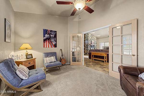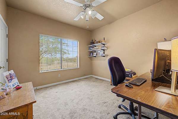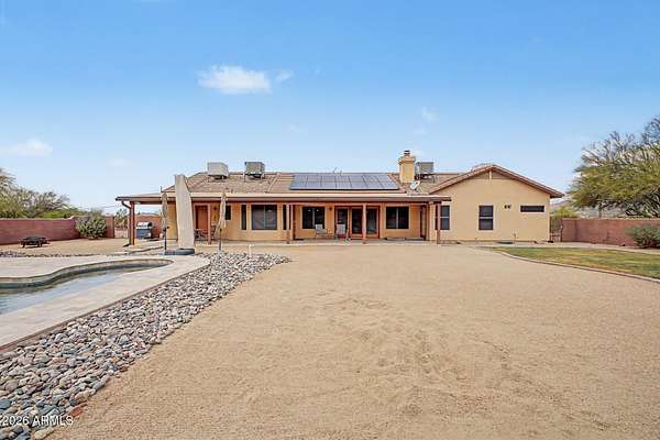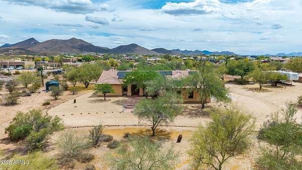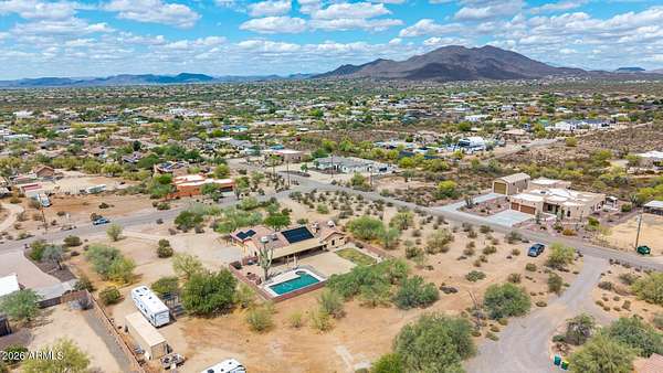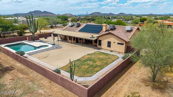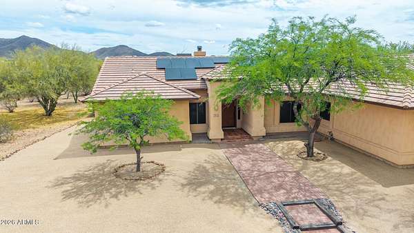 Experience elevated desert living on 2.5 acres surrounded by breathtaking mountain views and the beauty of the Sonoran Desert, complete with your own mature saguaro cactus. With no HOA, this property offers privacy, space, and the freedom to truly enjoy the desert lifestyle. This 4-bedroom, 2.75-bath home offers approximately 2,400 square feet of living space and a 3-car garage. Inside, the home features a cozy family room with a fireplace, creating a warm and inviting gathering space. Step outside to your private backyard retreat featuring a pebble tech pool with travertine-style decking, perfect for relaxing and entertaining while taking in the surrounding desert and mountain views. Important updates and features include: Roof and two A/C units replaced in 2015 New water heater in 2023 New well pump with pump saver installed in 2024 New electrical panel Single well with a 5,000-gallon water storage tank 2,500-gallon septic system with leach field located on the south side of the home Additional highlights include a climate-controlled workshop connected to the home's A/C system, a gun safe that will remain. With ample space, beautiful desert surroundings, and valuable system upgrades, this property offers a rare opportunity to enjoy peaceful Arizona living with room to spread out.