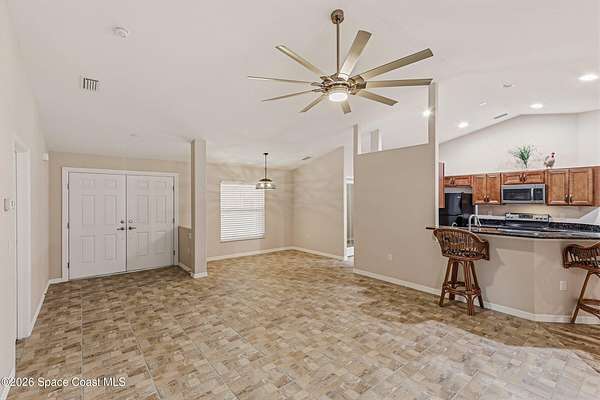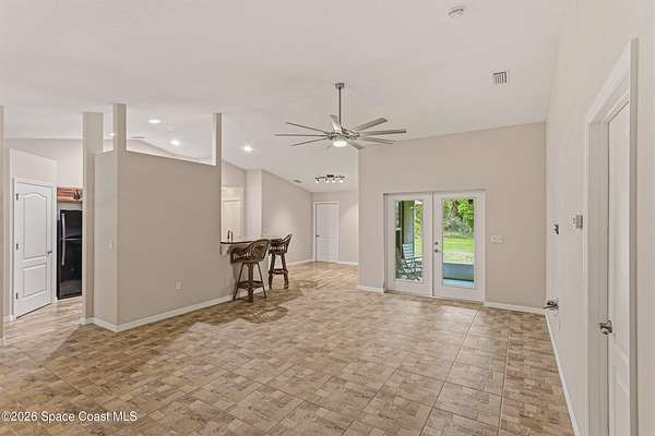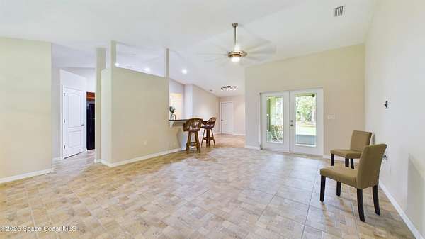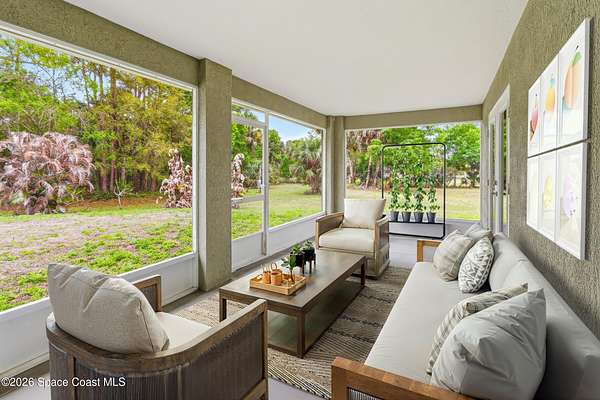 Situated in the quiet and scenic community of Grant-Valkaria, this custom 3-bedroom, 2-bathroom home with a dedicated office offers space, flexibility, and a peaceful Florida lifestyle. The open floor plan features inviting living areas filled with natural light, creating an ideal setting for both everyday living and entertaining. The kitchen flows seamlessly into the main living space and offers ample cabinet and counter space. The primary suite includes a private bathroom and generous closet space, while two additional bedrooms are well-sized for family or guests. The office provides the perfect setup for remote work, hobbies, or additional flex space. Outside, the expansive property offers room to add a pool and accommodates horses, providing endless possibilities for outdoor living and recreation. Enjoy privacy and open space while remaining conveniently located near local amenities, schools, and major roadways. A rare opportunity to enjoy country living with modern comfort.