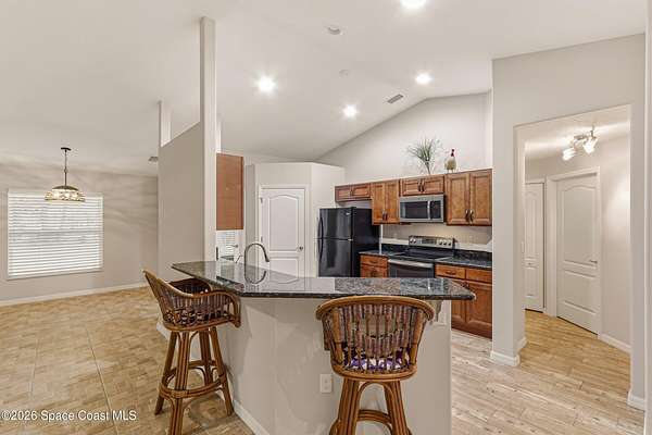 - Breakfast Bar, Ceiling Fan(s), Pantry, Shower No Tub Primary Bathroom, Split Bedrooms, Walk-In Closet(s)