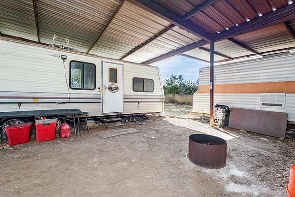 The 900 sq ft camp under a sturdy canopy, with 2 campers hooked up to electricity and water, is move-in ready. Grills, fridge, freezer, and furniture all stay with the sale. There are several excellent homesites, and the land is well-suited for agriculture or other outdoor pursuits. Access is easy via a farm road, just minutes from Brownwood. About 3 hours from Austin and Dallas, 4.5 hours from Houston, and 20 minutes from Lake Brownwood, it's convenient for weekend retreats or year-round living.