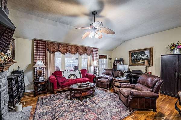 Est $2,226/moSetting on 4.68 mostly wooded acres this property has a lot to offer! The main residence offers 3 bedrooms, 2 full baths, 2 living areas and a sunroom. Boasting a fully equipped kitchen with granite counter tops, wood burning stone fireplace, hardwood floors, whole house water filter system, replacement windows, exterior security cameras, and a New Roof. Above the large 2 car heated/cooled garage with full bath there is a 28ft x 35ft fully furnished studio apartment with private entrance that could be income producing. This is one you don't want to miss!