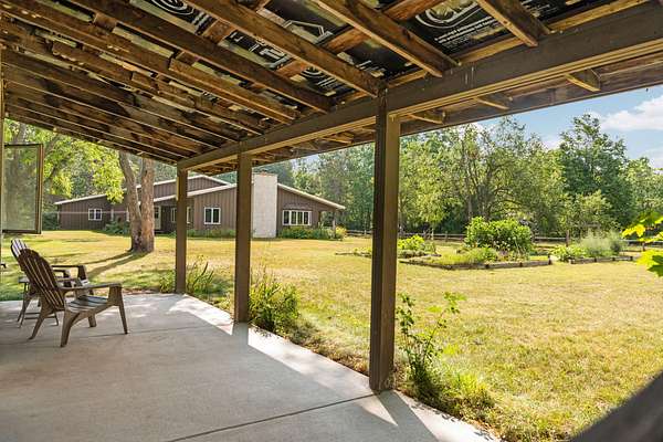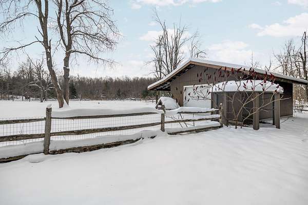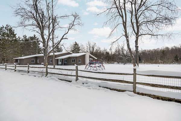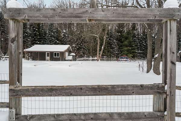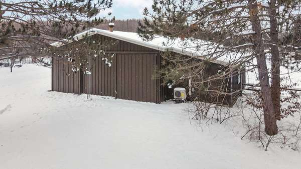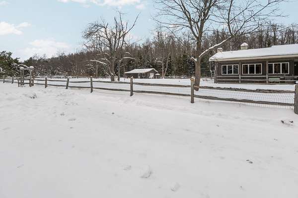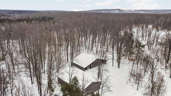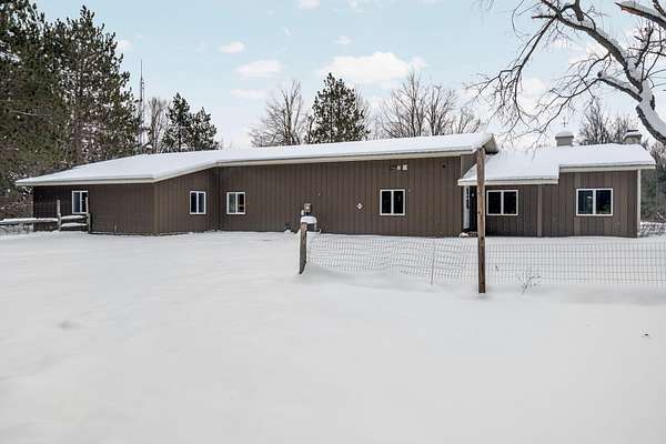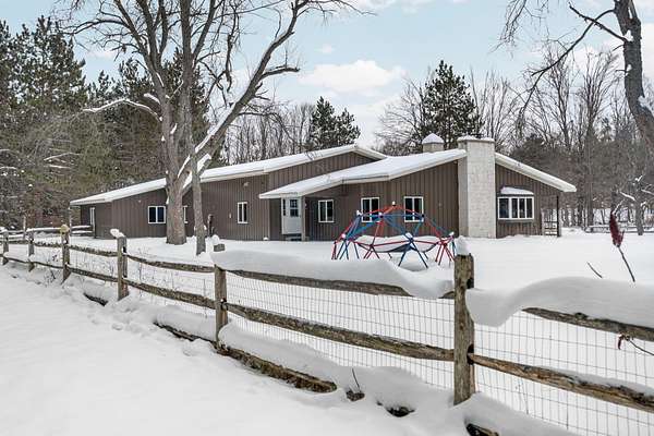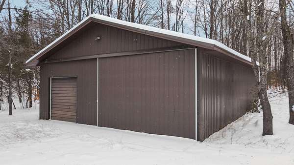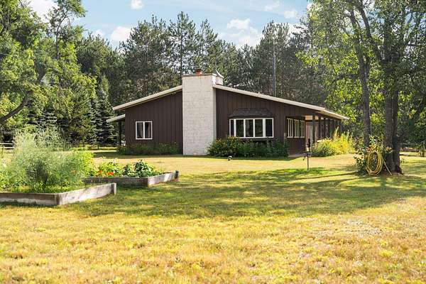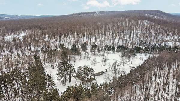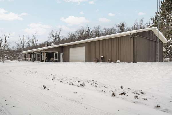 Discover unparalleled seclusion and versatility with this 3-bedroom home set on 80 beautifully wooded acres. Designed for comfort and functionality, the interior features an inviting open layout with vaulted ceilings, a striking stone fireplace, and a spacious owner's suite with its own walkout to the yard. High-speed internet ensures you stay connected while enjoying the peaceful surroundings. A true standout is the oversized, 4-car attached garage, with its own bathroom, & a finished bonus room that can serve as a hobby space, office, or playroom. Outdoors, the fenced yard and garden beds are ready for planting, and the property includes two large pole buildings plus a finished shed This is the perfect blend of privacy, recreation, & modern convenience, all in one remarkable setting.