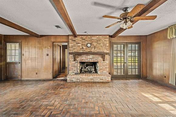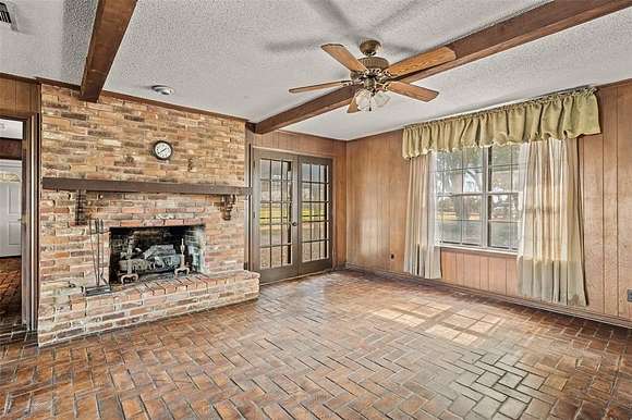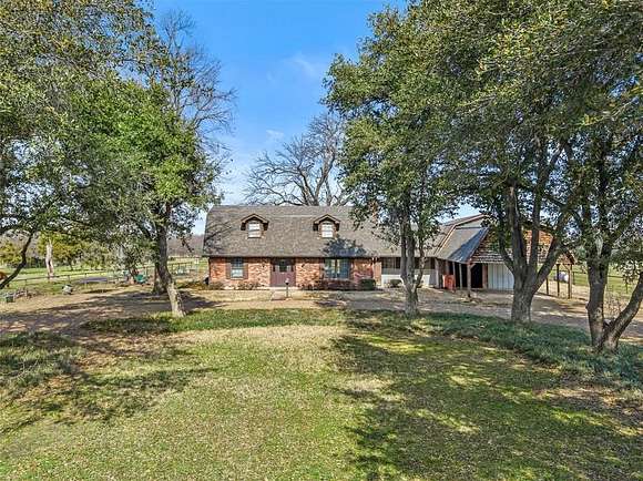 161.3864 acres - 3998 CR 2706. Unique ranch with a variety of land use! Cattle, horses, recreation, fish, deer, wild hogs at the back on the creek. There is open pasture areas and wooded areas. Currently being leased for cattle and horses, 4 ponds on property. One pasture by the home has pipe fencing. Pretty tree line, circle driveway leading to home with large trees around the home. It is a 2 story 4 bedroom, 3.5 bath, 2 living areas, office, 2 car garage and a 2 car attached carport. Has open floor plan with pretty brick floors in living area & kitchen, ceramic tile & carpet in other areas. French doors, bay window by dining area, fireplace with gas logs. The family room on back of home, lots of windows with scenic view of horses, cattle & wildlife. Home needs TLC. Barn behind home with some concrete and 4 stalls. Close to town. Caddo Mills ISD. Come take a look!
