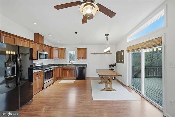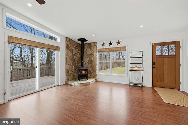 Cradled within the ridgelines of the Blue Ridge foothills, Hidden Valley Lane presents a rare opportunity to claim your own private estate. This five-acre peaceful oasis - zoned RC (Rural Conservation) within Fauquier County - offers and a living canvas of panoramic mountain views, open meadow, and the unhurried rhythms of country life, preserved precisely as nature intended. Two of the five acres are fully fenced in classic split-rail fashion - an aesthetic nod to the region's equestrian heritage - offering immediate utility for hobby farming, small livestock, a kitchen garden, or simply the serene pleasure of a well-defined outdoor sanctuary. The remaining acreage unfolds in sweeping, unobstructed views of the mountain ridges that define the western Virginia skyline, bestowing every sunrise and sunset with quiet grandeur. Enjoy the privacy from either the stone patio or thoughtfully maintained deck. Cathedral ceilings and engineered Brazilian cherry Pergo floors throughout main Level give the overall feel of a Craftsman's style to this elevated ranch. The primary suite is a true sanctuary, anchored by an authentic cast iron claw-foot soaking tub, multi-head shower, vessel wash-basin sink, and striking cobblestone flooring. The home's design embraces indoor/outdoor living with multiple exterior entrances, while low-maintenance siding and soffits keep upkeep effortless. Systems have been consistently serviced and well maintained throughout. The lower level opens through double walkout doors to the fenced grounds and features slate tile floors, a surround media system, and a bath rough-in - offering excellent potential to expand living space to suit your needs. Set on over two acres of fenced yard with access to a private community lake, this property is perfectly positioned for the outdoor enthusiast - minutes from Shenandoah National Park, the Shenandoah River, multiple state parks, a 4,000-acre wildlife preserve, and award-winning Virginia vineyards, all with quick access to I-66. The RC zoning designation, reserved for environmentally sensitive mountainous and rural lands, ensures that the natural character of this community remains protected for generations - a covenant not just with the land, but with all who call this valley home. Nestled within the very heart of Virginia's celebrated wine country between Linden Vineyards, Rappahannock Winery, and Three Fox Vineyards. Beyond the vine, the Marriott Ranch Resort - a working cattle ranch and one of the region's premier retreat destinations - offers a curated taste of Western Virginia hospitality, from horseback riding set against a backdrop of incomparable pastoral beauty. For the equine enthusiast and outdoor adventurer alike, Virginia Equine Adventures provides guided trail rides through the Blue Ridge that are simply without parallel, traversing some of the most spectacular terrain on the Eastern Seaboard.