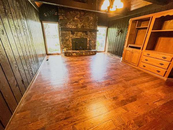 Extra's include...Open layout in main living area / Gorgeous rock wood burning fireplace, Vaulted ceiling with exposed beams / French doors open to a nice sunroom / Kitchen offers a solid surface counter top, range, dishwasher & microwave, just steps away is a utility closet & pantry / Wide hall / Hall bath offers tub shower with custom ceramic surround & dbl vanities / Spacious owners bedroom with an attached private bathroom / Central heat (heat pump) & air new, water heater new 2017 / Thermopane windows / Covered deck / Metal roof / 2 car attached garage / Front yard is irrigated / Detached 10x25 storage bldg / Inground pool 20x40 / Charming pool shed equipped with a changing area & half bath