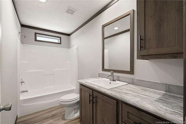 The main living area features durable vinyl flooring, perfectly paired with plush carpeting in the three spacious bedrooms, including a luxurious master suite with ample closet space. The modern bathrooms impress with stylish fixtures and contemporary finishes.