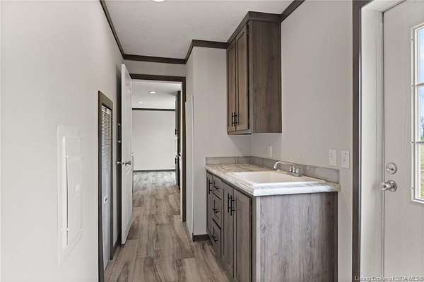 A built-in office area with a large, light-filled window provides the ideal workspace for remote professionals. The dream kitchen is the heart of the home, showcasing sleek laminate countertops, abundant cabinetry, a large island for meal prep and entertaining, and stainless-steel appliances for a modern touch.