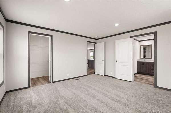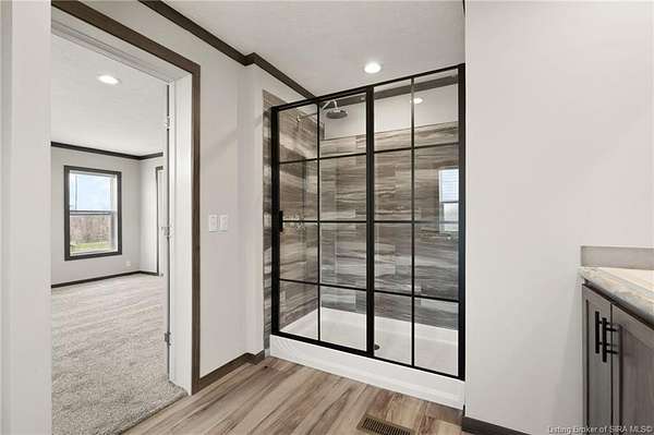 Discover the charm of this newly constructed 1800 sq. ft. home, all conveniently situated on one level. Nestled on 5 flat acres, it offers the epitome of country living with breathtaking panoramic views. As you step inside, you'll be welcomed by an open-concept design featuring lofty ceilings and expansive double-pane windows that flood the space with natural light, creating a warm and inviting ambiance. The main living area boasts durable vinyl flooring, while the three spacious bedrooms, including a luxurious master suite with a walk-in closet and master bathroom, are adorned with plush carpeting. The home impresses with its stylish fixtures and contemporary finishes throughout.