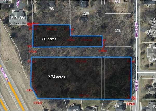 Est $1,923/moGreat development opportunity. Zoned R3 single family homes or townhomes. Already talked to the city administrator and he feels water and sewer are in place for a slab on grade development.
