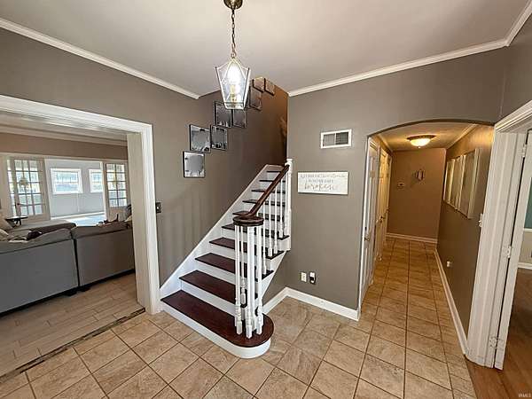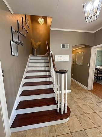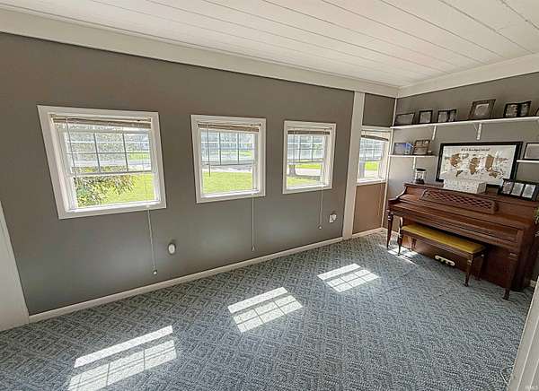 This exquisite home sits on over two acres +/- at the edge of town, offering the peaceful feel of country living while still enjoying sidewalk access to downtown. Located near the sports complex, schools, the city pool, and countless amenities, it's the best of both worlds. A circle driveway leads you to an attached garage plus a large detached building, ideal for vehicles, hobbies, or storage. The yard is made for recreation--with wide open areas for play and gatherings, a volleyball court, plus shady spots under the mature trees where you can relax in the breeze. The outdoor living space is unmatched, featuring a covered patio with a built-in kitchen, grill, seating area, and TV. Multiple covered porches provide even more options to enjoy the outdoors year-round. Inside, you're welcomed by a gracious foyer with hardwood floors and a beautiful staircase. The main level includes a spacious living room with built-in bookshelves and a gas fireplace, opening into a four-season sunroom with French doors. The dining room, also with French doors, flows right into the outdoor living area--perfect for entertaining. A cook's kitchen with a bar, a half bath, a laundry/utility room with generous storage, and an elevator complete the first floor. The primary bedroom suite offers abundant closet space, while a second large bedroom on the main level provides flexibility. Upstairs, discover two extra-large bedrooms designed with kids (or kids-at-heart) in mind--featuring dormer windows, cozy nooks, built-in drawers, and plenty of charm. A bonus game or reading area overlooks a lovely view, complemented by an additional full bath. From everyday living to entertaining, this home truly has it all--space, character, and an outdoor lifestyle that you dream of.