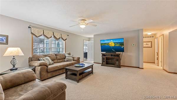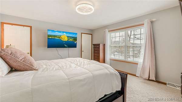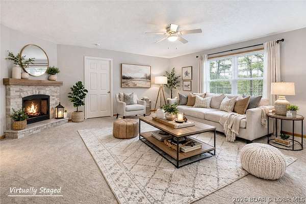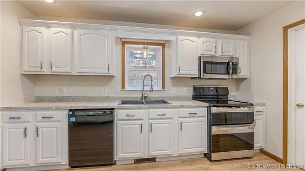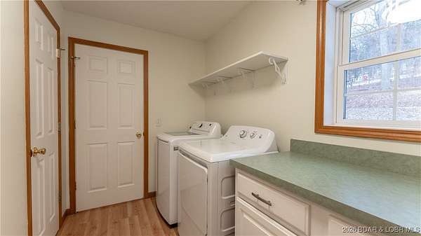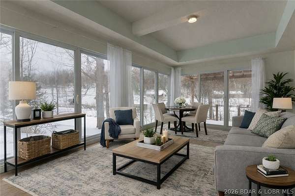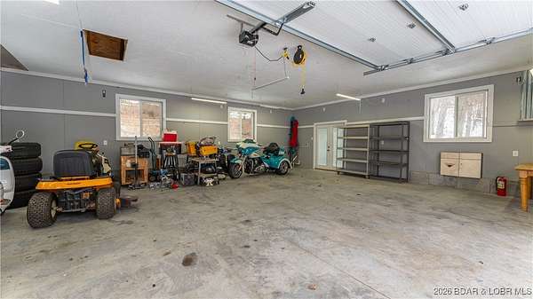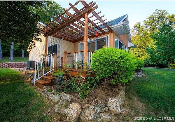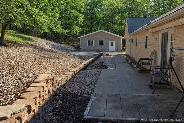 Experience peaceful country living on 4.3 acres with stunning views of a private community 2-acre lake! This beautiful ranch-style home offers spacious, one-level living with an open floor plan designed for comfort and entertaining. The updated kitchen shines with modern cabinets, appliances, and stylish laminate flooring. Relax in the enclosed sun porch that opens to an arbor-covered deck-perfect for enjoying serene lake views and outdoor gatherings. A versatile bonus room connects the home to the garage-ideal for a home office, craft space, or extra living area. The expansive master suite boasts his-and-hers closets and a luxurious bath featuring an updated vanity and walk-in shower. Enjoy plenty of storage with a 2-car attached garage plus an additional unfinished room above. The oversized, insulated detached garage includes water and 220 electrical-perfect for your projects or toys. Enjoy serene, private country living just minutes from Lake Ozark. Don't miss this incredible opportunity!