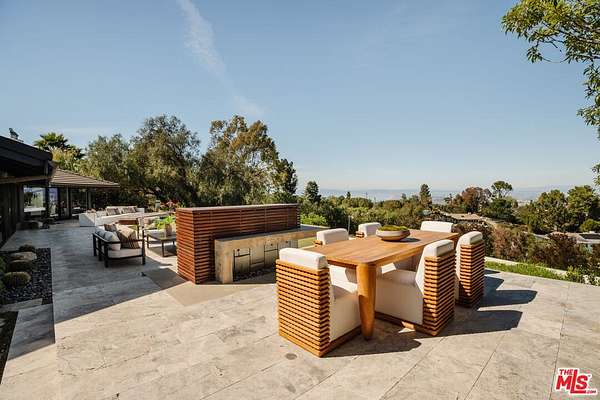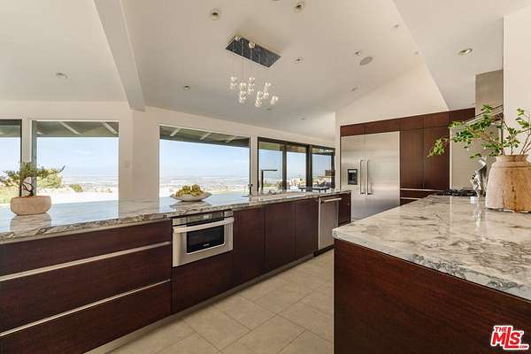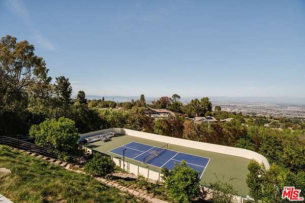 Behind the gates of the prestigious city of Rolling Hills on the Palos Verdes Peninsula, this five-bedroom, six-bathroom estate spans more than two acres of manicured grounds, where mornings begin in stillness and evenings are framed by sweeping, unobstructed views from Redondo Beach across the South Bay and Los Angeles skyline to Long Beach. Designed for both retreat and gathering, the estate offers a resort-style, wellness-driven lifestyle with amenities rarely found together in Rolling Hills, including a pickleball court, fully equipped home gym, pool, spa, hot tub, putting green, outdoor kitchen, and detached guest house. Inside, natural light fills expansive living spaces as oversized windows frame the surrounding landscape. The floor plan flows effortlessly from living and dining areas into the kitchen, creating an environment equally suited for quiet mornings or lively evenings with guests. A custom saltwater aquarium feature introduces a distinctive architectural moment, adding depth and character to the interiors. The chef's kitchen, appointed with premium Thermador appliances, marble countertops, custom cabinetry, and generous storage, connects seamlessly to a temperature-controlled wine room and wet bar, designed for both everyday use and entertaining. The primary suite is positioned as a tranquil retreat with soaring ceilings, expansive proportions, and a spa-inspired bath. An oversized loft provides flexibility for a home office, lounge, or wardrobe expansion, while a patio just beyond the sliding glass doors offers a peaceful outdoor escape. Three additional guest bedrooms in the main residence each feature newly renovated ensuite bathrooms, while a detached guest house near the pool offers comfortable accommodations for visitors, a movie theater, or live-in staff. Outdoors, the grounds take on the feeling of a resort retreat. A waterfall cascades into the pool and spa, while multiple areas for dining and lounging invite time spent under the open sky. The outdoor kitchen, complete with grill, oven, refrigerator, and retractable awning, creates a natural extension of the home for hosting. Recreation and wellness are woven into daily living. The newly updated pickleball court, putting green, and home gym offer an elevated lifestyle centered around activity, balance, and ease. A fully paid Tesla solar system with backup batteries supports energy efficiency and long-term sustainability. Life in Rolling Hills offers a rare balance of space, security, and connection to nature, with 26 miles of equestrian trails, tennis courts, and scenic hiking paths, all just minutes from the beaches of the South Bay, Palos Verdes golf courses, and everyday conveniences. This is a dream where views and lifestyle come together in a way that feels both grounded and elevated.