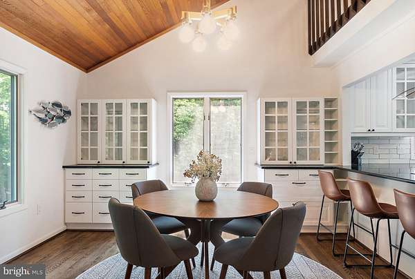 Enjoy a waterfront country club lifestyle with the privacy of wooded views at 4 Bunkers Court! This beautifully updated and private creek front home is tucked away on a wooded 1.53 acre cul-de-sac lot at the top of Little Greenwood Creek in the sought after waterfront golf course community of Prospect Bay. From soaring vaulted ceilings and over $100k of recent thoughtful upgrades throughout, this home combines comfort, style, and space indoors and out. Step inside to a welcoming foyer and formal dining room with updated lighting. The showstopper of the home is the stunning family room featuring vaulted wood planked ceilings and a striking stone fireplace, an architectural focal point that adds warmth and character. The updated kitchen is a chef's delight with new stainless steel Frigidaire Gallery appliances, granite countertops, freshly installed tile backsplash, new flooring, and a sleek hood vent. A cozy breakfast nook with custom built-ins offers extra storage and bar countertop seating. Just off the kitchen, you'll find a new mudroom and laundry area with two additional storage closets and a newly added powder room, all connecting to the oversized two-car garage for everyday convenience. The main level offers three bedrooms and two full bathrooms, including a serene primary suite with private patio access, two closets, and a fully updated en suite featuring a walk-in glass enclosed shower with overhead and wall mounted shower heads, and a double vanity with modern finishes. Upstairs, a spiral staircase leads to a spacious and versatile loft ideal as a fourth bedroom, office, or entertaining space. This grand loft includes a game and TV area, pool table, new full bathroom with designer tile and a glass shower door, and a custom-built bar area with a beverage fridge, microwave, sink, cabinetry, and backsplash perfect for hosting guests in style. Outside, step onto your private bluestone patio and hot tub, surrounded by the natural beauty of your wooded lot. The sellers have explored the potential of building a boardwalk to the creek with a floating dock buyers to verify offering exciting possibilities for enjoying the waterfront setting. Living in Prospect Bay means more than just a beautiful home, it's a lifestyle. Enjoy first class amenities including a championship 18 hole golf course, tennis and pickleball courts, outdoor pool, clubhouse with dining, social events, boat basin, and more. Whether you're hosting in the open concept living spaces, relaxing in your upstairs retreat, or soaking in the serenity of your private wooded backyard, 4 Bunkers Court is the perfect place to call home!