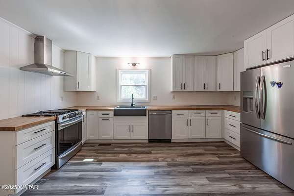 This is a move in ready home that is also ready for some TLC. Upstairs is fully renovated with 2 bedrooms and 2 full bathrooms. Open floorplan with 2 living room areas. Formal dining. Gas stove and new stainless-steel appliances. New floors. New windows. New roof. You then have a heated and cooled unfinished basement with possibly 2 rooms or 1 room and a living area and a full bathroom and fireplace. The basement is ready for you to create your own visions to make your basement dreams come true. If not a bedroom, possibly set up a gym or a rec room for get togethers. Maybe even a small at home business area. There is a shed and covered porch area to enjoy grilling or your morning coffee while watching the wildlife. The 1.77 acres sits off a quite road but conveniently located to Milan amenities. No city taxes. No HOA. Possible100% financing lender approved.