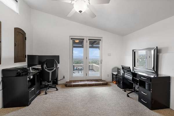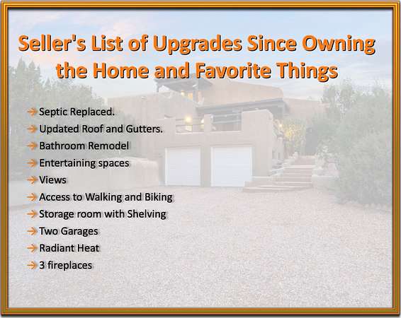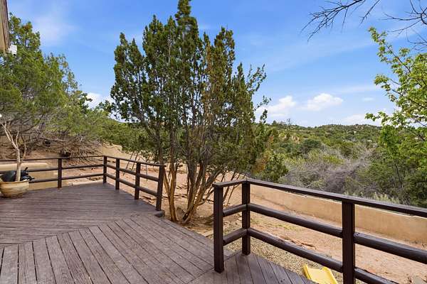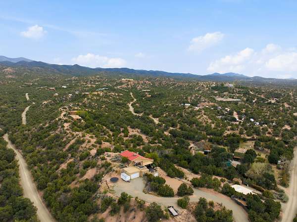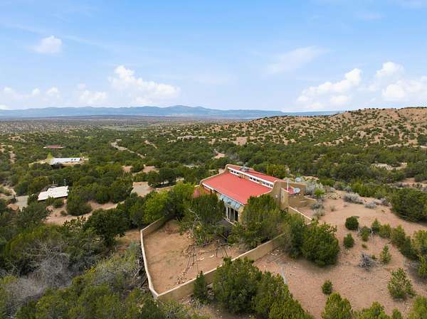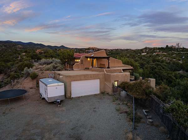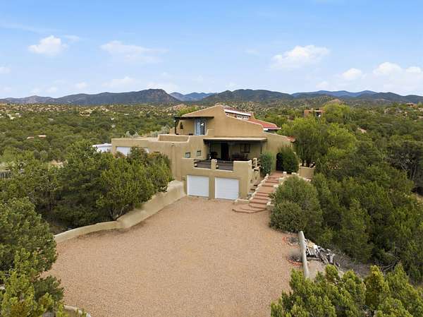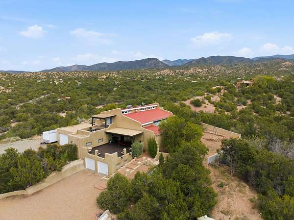 Discover the sanctuary of this picturesque home located in the hills of Tesuque. Offering breathtaking views of the Sangre de Cristo and Jemez mountain ranges, along with the lush Pojoaque Valley. This passive solar estate features, high ceilings and large windows that flood the interior with natural light, while the 3 kiva fireplaces enhance the tranquil ambiance. Set on 2.5 acres, the property includes 3 bedrooms, 3 bathrooms and 2, two-car garages, offering ample space for four vehicles and additional storage. Only 17 minutes to the plaza and 34 minutes to Los Alamos. This home is centrally located for convenience.