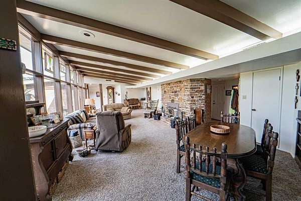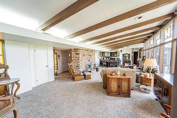 Unique! Unusual! Nothing like it in town! A pleasant one of a kind built for family comfort, and living enjoyment in a rather Mid Century modern type style! There are 4 actual bedrooms with nice closets, but there are also two different rooms to be used as offfices for work from home couples or libraries or media rooms! What ever you desire for these spaces! Featured in the foyer is a brick wall that is the back side of the WBFP located in the naturally lighted huge family room with beamed ceiling and indirect lighting. The ample windows look out on the back yard with a feel of being in the country. There is an area for formal dining with a wet bar, counter and storage. Close by is the wonderful kitchen boasting custom made cabinetry, tons of work space and storage and lots of extras including a greenhouse window over the double sink. A breakfast bar and counters are quartz or silestone. Electric stove with big oven but also an additional large oven. If the cook prefers gas, there is also connection for that.A nice bay window in the breakfast space area. Utility room hosts a big sink, pantry, and even more storage. There is a half bath in this area. The bedroom wing features 3 of them that are about the same size with great closets. The hall bath is beautiful with 2 sinks and custom cabinets.The primary bedroom with an outside door and sitting porch, is private at the end of the hallway with walk-in closet, ensuite bath with another walk-in closet, large tile shower, vanity. There is a great patio across the back of the house entered from the living room and other areas and is perfect for outdoor entertaining. Flooring is ceramic tile, parquet, and carpet. 3 CHA Units, 2 water heaters. There are just too many wonderful and useful perks in this house to list, so make appointment to see it with your favorite realtor yourself!