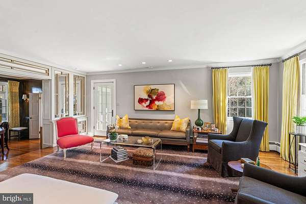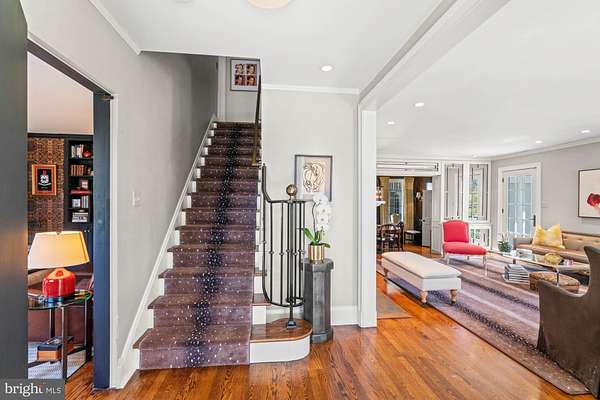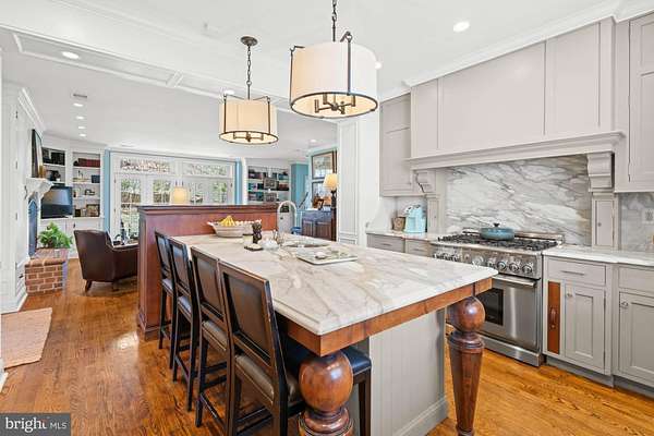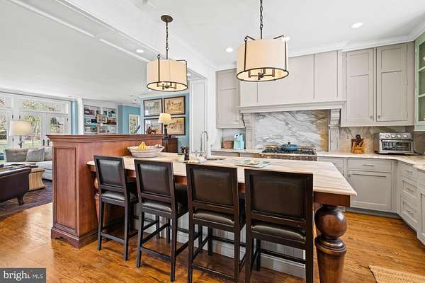 Welcome to this beautifully updated and expanded Cape Cod-style home, located just moments from the Greenspring Valley Hunt Club golf course and Garrison Forest School. Offering a blend of timeless charm and modern upgrades, this home is the perfect sanctuary for comfortable living and entertaining. The first-floor guest suite is a standout feature, providing both privacy and convenience for visitors. It comes complete with a fully renovated, luxurious bathroom. Just off the main living areas, the cozy library or den offers a peaceful retreat, featuring handsome built-ins that add both style and functionality to the space. A perfect retreat to read a good book or entertaining space with friends. At the heart of the home is the updated kitchen, which boasts luxurious Calcutta Gold marble countertops, custom cabinetry, and top-of-the-line appliances. It's a chef's dream and offers ample space for meal preparation and family gatherings. The family room, located off the kitchen, is a cozy space with built-ins and a charming wood-burning fireplace, making it ideal for casual family time or entertaining. Adjacent to the family room is a well-thought-out mudroom with cubbies and cabinets, providing a perfect spot for organizing coats, shoes, and bags as you come and go. Upstairs the home's enlarged primary suite is a true retreat, offering a spacious layout with a sitting area that provides the perfect place to unwind after a long day. There is an office, or additional bedroom off of the primary suite, depending on your needs. Two additional bedrooms and a full bathroom complete the second floor of the home. Outside the large, level lot offers plenty of space for outdoor activities, while the outdoor living areas, including patios, a grilling area, and an additional wood-burning fireplace, provide the perfect setting for al fresco dining or relaxing with friends and family. The outdoor shed was originally a one horse barn- complete with a stall and space for tack and feed! A focal point of the backyard is the champion Wye Oak tree. This home seamlessly blends modern updates with classic Cape Cod charm, offering a peaceful retreat in a highly sought-after Greenspring Valley location. Don't miss your chance to make this stunning property your own!