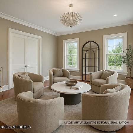 COMING SOON, this listing can not be shown until 3/10/26. Set on 1.5 acres this newly constructed home offers over 8100 sq ft this home offers 3 levels of living space. Overlooking Rumson Country Club it features 6 beds, 6.5 baths with a 1st flr guest suite. Custom eat in kitchen w/ Brookhaven cabinetry, quartz counters, large island, Subzero & Wolf appliances & 2 Bosch dishwashers. The great room features a coffered ceiling, gas fireplace & leads to a covered bluestone veranda w/ fireplace, built-in grill, firepit, saltwater pool & spa. Elegant designer lighting and smart home features throughout. A lower level is finished and ready for you to create your entertainment space. 3 car garage w/ EV charging & 16' ceiling. Generators and well for sprinklers. Partially fenced yard.