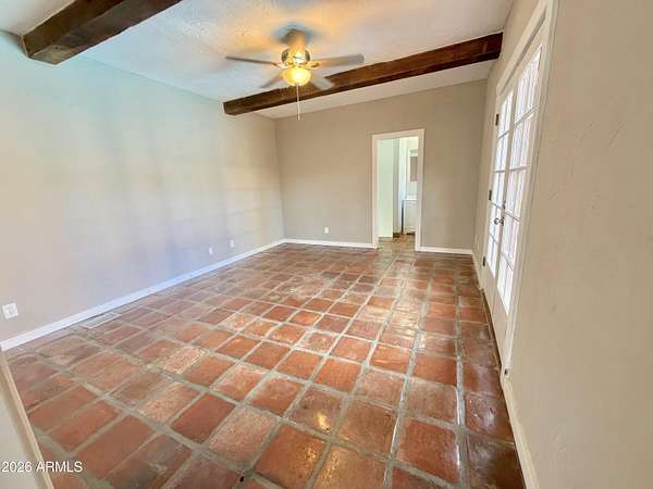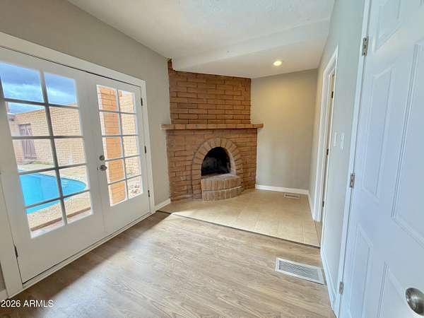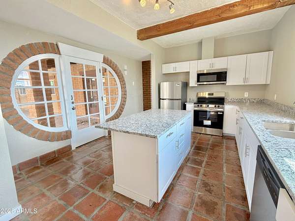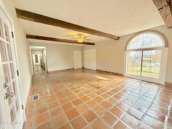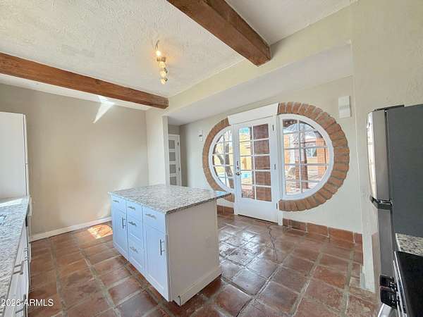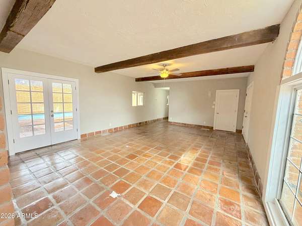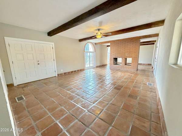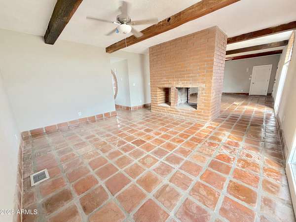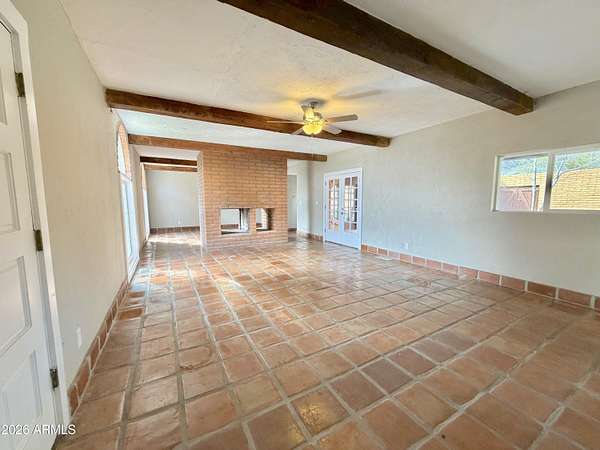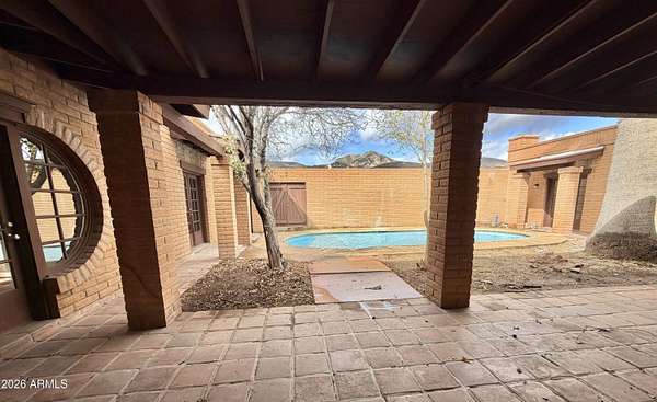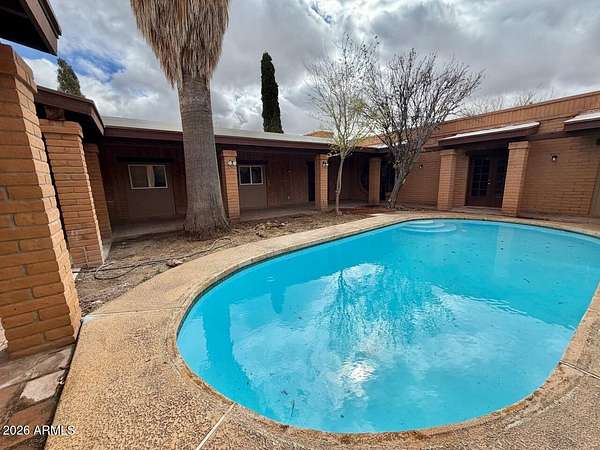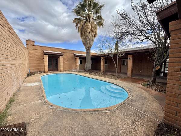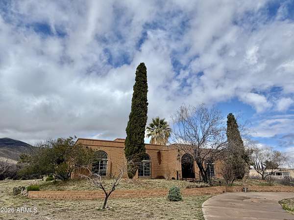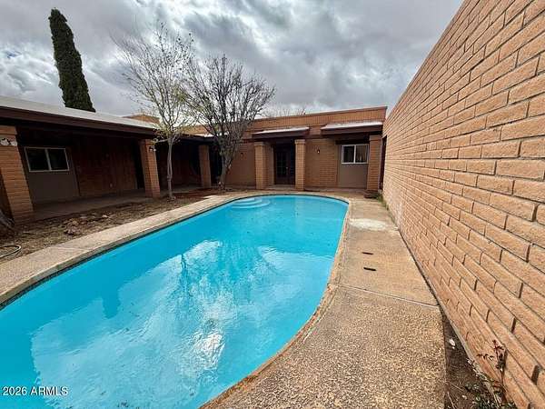 Southwest charm meets modern comfort in this beautifully updated 2,467 sq ft U-shaped home designed to embrace indoor-outdoor living and plenty of space outside to expand on over 1.64AC's. Featuring three private bedroom suites with their own baths, the layout is ideal for guests, multigenerational living, or a potential vacation rental. The home surrounds a peaceful courtyard with a sparkling pool and wraparound patio, creating a private desert oasis. Classic Saltillo tile flooring enhances the warm Southwestern character while sweeping mountain views add to the home's tranquil setting. The fully remodeled chef's kitchen boasts granite countertops, a large island, brand-new appliances, and abundant storage for effortless entertaining. (click more) The oversized MAIN primary suite is a true retreat with its own fireplace, dual sinks, spacious walk-in shower, and generous closet space. Recent upgrades include new HVAC's, new water heaters updated lighting, and modern plumbing fixtures, new pool equipment and more. The open great room with a double-sided fireplace offers a comfortable gathering space filled with natural light. Huge GARAGE/WORKSHOP area and a two car carport. Plenty of room to park you RV's Recreational Toys and trailers on the roomy 1.64 acre lot in desirable San Jose Estates. Also included are two very nice storage units. This exceptional property is just minutes from the charm, art, and culture of historic Old Bisbee. This home is UNIQUE in many wonderful ways! A MUST SEE!