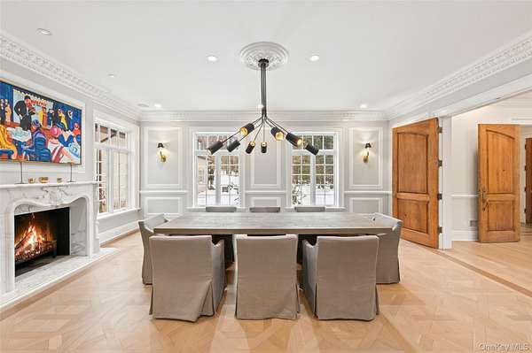 Situated within the gated enclave of Conyers Farm in Armonk/backcountry Greenwich, this elegant French Chateau embodies architectural distinction, privacy, and resort-style living. Here, heritage and pastoral elegance converge, framed by rolling polo grounds, preserved countryside, and an atmosphere defined by quiet exclusivity. Set gracefully on more than 13 acres, comprised of mature woodlands and formal gardens, the estate blends timeless European elegance with modern luxury amenities. Designed to accommodate both intimate living and large-scale entertaining, the residence offers thoughtful gathering spaces that balance grandeur with warmth. A dramatic two-story reception hall with a sweeping staircase is most inviting. The formal rooms include a ballroom-style salon, formal living and dining rooms, each anchored by a fireplace, creating a convivial atmosphere. Fine architectural details that include plaster moldings, boiserie library, intricate millwork, and multiple marble fireplaces, further defines the gracious interior. A chef's kitchen equipped with top-tier appliances is supported by a fully equipped butler's pantry, mud porch with tremendous storage +office blends seamlessly into relaxed living areas. The residence offers seven bedrooms and nine bathrooms, highlighted by a spectacular primary suite designed as a private sanctuary. Featuring a fireplace, private balcony overlooking a rare ornamental pine grove, dual spa-like baths, and two extraordinary walk-in dressing rooms, the suite combines intimacy with an understated nuance. Additional accommodations include four upper-level bedroom suites and a private two-bedroom guest studio residence with separate entrance, ideal for extended family, au pair, or staff quarters. The garden level transforms the home into a private wellness and entertainment retreat. This exceptional lower level showcases a media room, theater and lounge with bar and fireplace. The fully equipped gym, sauna, oversized whirlpool spa, and an indoor resistance pool creates a year-round resort experience within the home itself. Expansive terraces extend the living spaces outdoors, overlooking the pool and manicured grounds. Privacy abounds across the sprawling lawns, and woodland vistas, offering idyllic spaces for relaxation and entertaining, alike. The huge drive-court and three car-carriage garage is complete with a barrel-brick lighted porte-cochere. Conyers Farm offers a rare blend of heritage and contemporary luxury. Enjoy 24-hour guarded security, effortless access to Westchester County Airport, and just 40 miles from Manhattan-Come Live The Legacy.