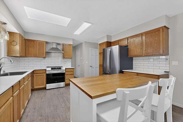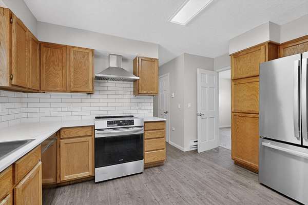 - Dishwasher, Free Standing Electric Range, Range Hood, Refrigerator