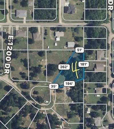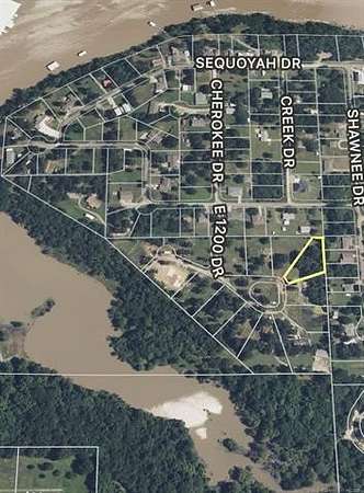 Leaving downtown Eufaula, Turn left toward OK-9 E (1 mile), Turn left onto E1210 Rd (0.3 miles), curve left onto Dabbs Rd/N4180 Rd (0.3 miles), Turn right onto EW 1207 (0.7 miles) to River Oaks entry and follow this same waterfront road around peninsula about 1 mile turning right on E 1200 Rd (Cherokee Dr) GPS 35.276680 -95.569546