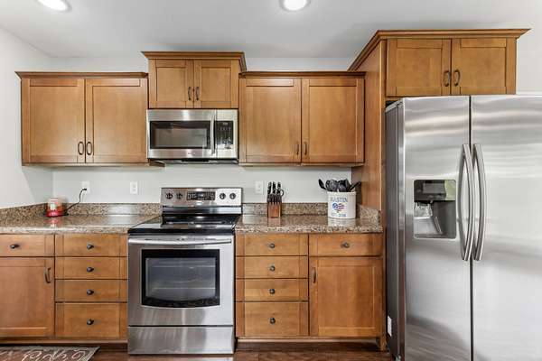 - Built-In Electric Range, Cooktop, Dishwasher, Microwave, Refrigerator, Stainless Steel Appliance(s)