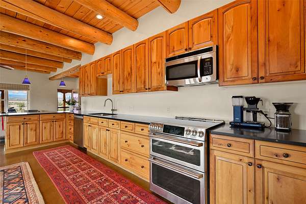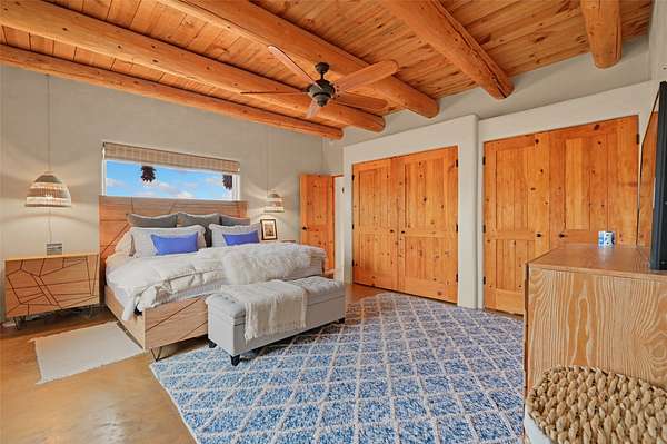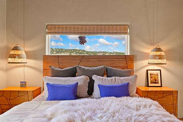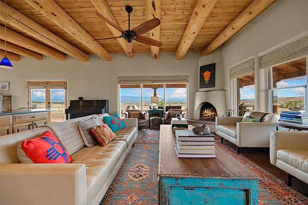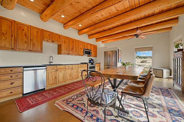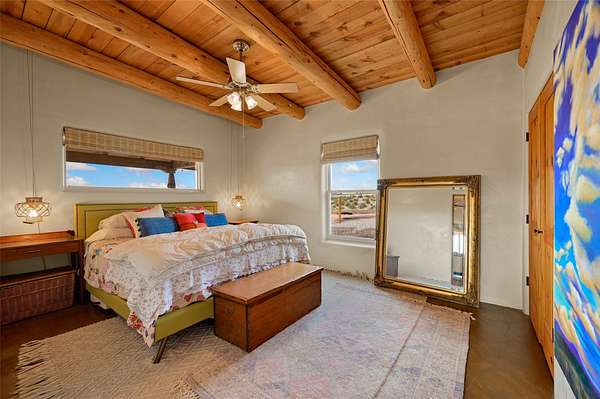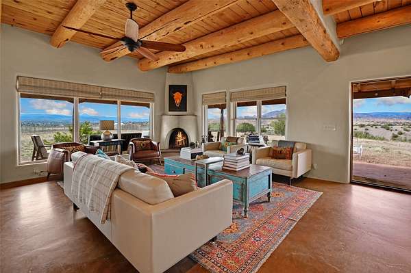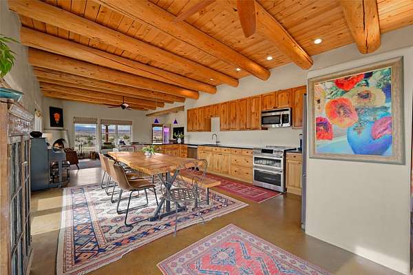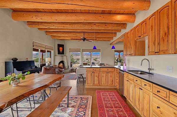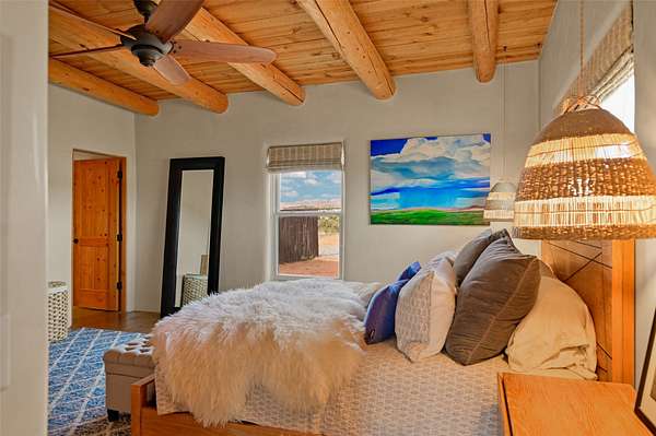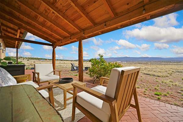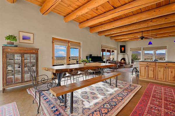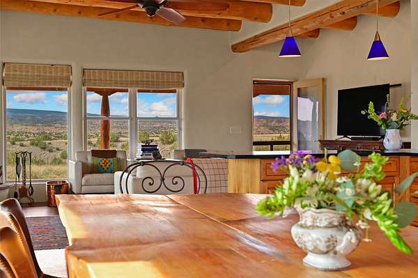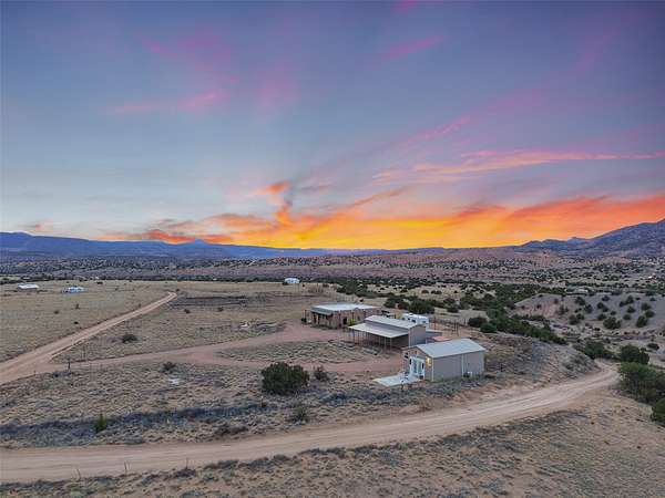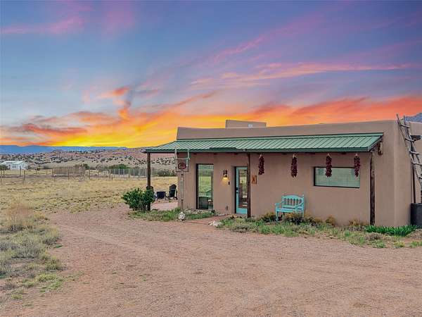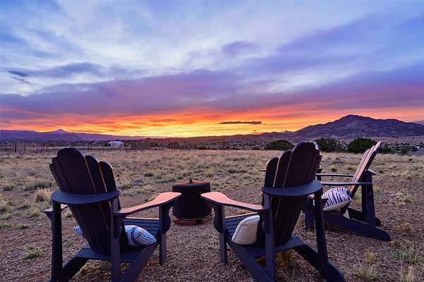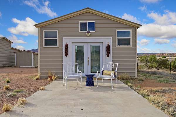 Imagine waking to endless skies, where soft morning light stretches across the high desert and the only sounds are the breeze and distant birds. This is a place of deep solitude and quiet inspiration, a landscape that invites reflection, creativity, and possibility. Days unfold slowly under vast blue skies with drifting white clouds, and evenings settle into unforgettable sunsets, with the silhouette of Pedernal Mountain glowing in the distance. At night, the stars take over, offering a front-row seat to the cosmos. This is more than a home, it's an experience of living fully immersed in the spirit of Abiquiu, a place long cherished by artists like Georgia O'Keeffe. Set on 2.23 acres, this well-maintained 2-bedroom, 2-bath residence offers both comfort and character. The home is thoughtfully appointed with stone countertops, stainless steel appliances, and an induction cooktop, blending modern convenience with a timeless Southwestern feel. Large picture windows expertly frame picturesque vistas from room to room. A covered portal extends the living space outdoors, perfect for entertaining or simply taking in the expansive views, while a cantina on the rear portal creates a natural gathering space for evenings under the open sky. Designed with creativity in mind, the property includes a converted barn now serving as an artist studio, an inspiring space to work and create surrounded by natural beauty. The studio is equipped with an unfinished bath and kitchenette, with all materials included to complete the vision. Additional features include covered parking, a versatile barn with a loft, roll-up door, and concrete floor, as well as additional hay storage. The property also includes a trailer that can convey with the sale, along with materials needed to finish it into guest accommodations or additional living space, offering excellent flexibility and potential. Located near Abiquiu Lake, Ghost Ranch, Plaza Blanca, and Poshuouinge Ruins, the property offers access to some of the Southwest's most iconic landscapes, along with local shops and dining in the Abiquiu area. Whether you're seeking a creative sanctuary, a peaceful escape, or a place to live in harmony with the land, 4 Fair Hope Drive offers an extraordinary opportunity to step into a lifestyle defined by beauty, space, and inspiration.