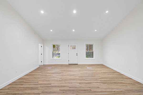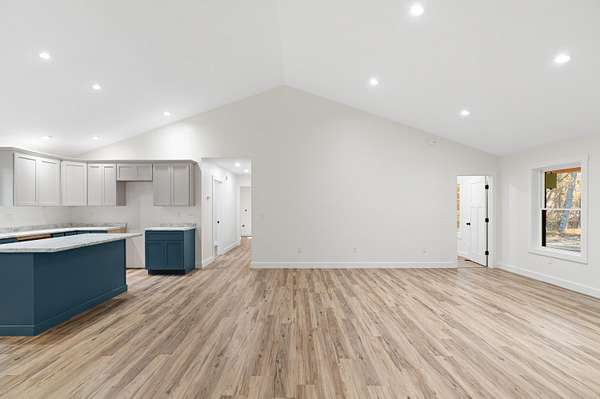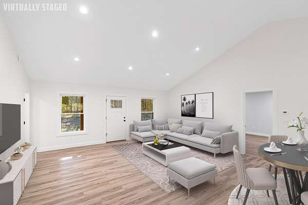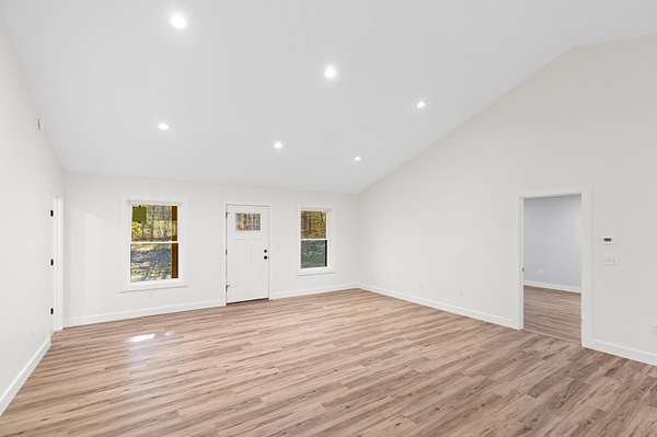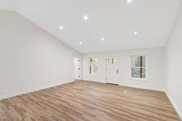 This modern ranch features radiant in-floor heat throughout and is conveniently located near Route 1 for easy access to shopping, dining, and commuting. With durable vinyl board and batten siding and a welcoming front porch, this home provides the perfect foundation for creating your dream space. Inside, the entryway leads to a practical utility room and laundry area. The open-concept kitchen, dining, and living area boasts vaulted ceilings, creating an airy and inviting atmosphere. The southeast-facing primary suite offers a peaceful retreat, complete with an en-suite full bath and a walk-in closet. Two additional bedrooms, each with its own closet, provide versatile space that could serve as home offices, bonus rooms, or extra sleeping quarters. Designed for seamless indoor-outdoor living, this home features both a back door off the kitchen leading to the backyard and a front door opening to the porch. Just 9 minutes from Wiscasset, 9 minutes from downtown Bath, 20 minutes from Maine Street Brunswick, and 45 minutes to Portland.