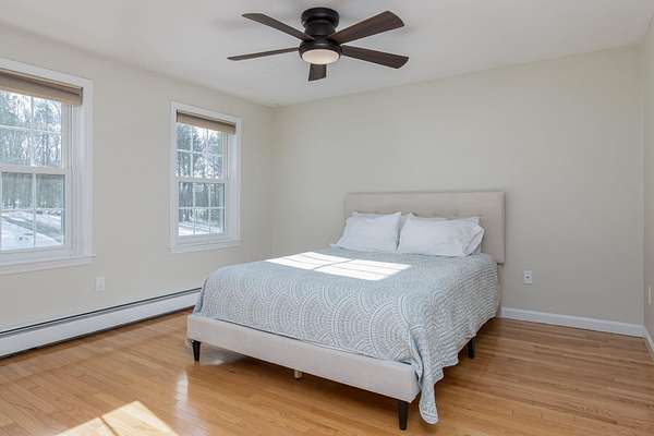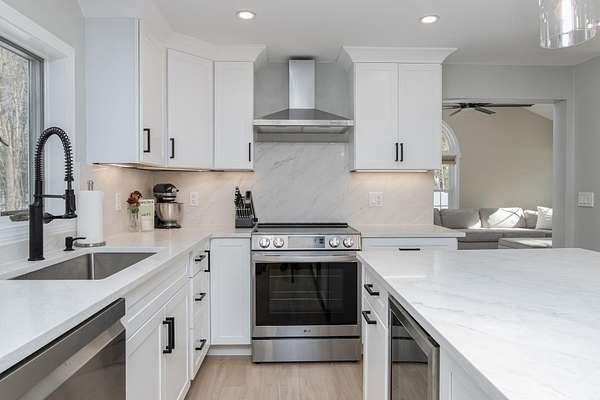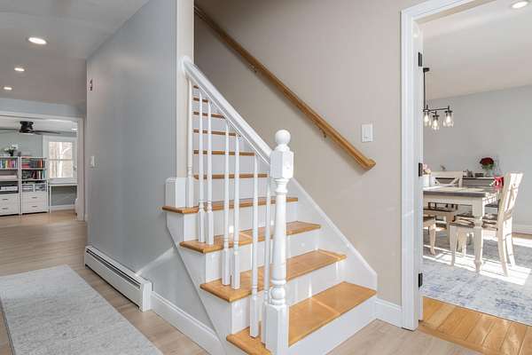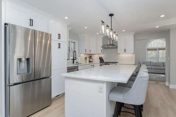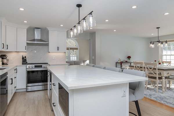 Beautifully updated and truly move-in ready, this 3-bedroom, 3-bath home offers 3,150 sq ft of living space on a private 1.61-acre cul-de-sac lot. The heart of the home is the brand-new renovated kitchen, featuring an impressive 8-ft quartz island with built-in microwave and beverage fridge, quartz countertops and continues with full quartz backsplash and new stainless steel appliances. The open floor plan flows seamlessly into the dining area and sunroom, enhanced by fresh paint and updated lighting throughout. The first floor includes a cathedral-ceiling great room with pellet stoves and a mini-split system providing efficient heating and cooling, a den, sunroom, first-floor laundry, and half bath--ideal for everyday living and entertaining. Upstairs, the spacious primary suite offers a walk-in closet with custom built-ins and its own mini-split system for year-round comfort. Two additional bedrooms complete the second level with a shared full bath. The fully finished third floor features two bonus rooms, offering exceptional flexibility for a home office, guest space, storage, fitness area, or creative use. Additional highlights include finished lower-level space, a two-car under-garage, efficient multi-zone heating, and a partially fenced yard with patio. This exceptional home combines privacy, space, and modern comfort in a desirable cul-de-sac setting. While all upgrades were completed with the intention of being a "forever home," a sudden job transfer has created this unique opportunity.