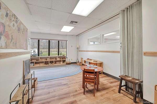 Welcome to a dream reawakened-where vision meets reality and inspiration fills the air! This spectacular, over 3,000 square foot school has been lovingly restored and revitalized, now standing tall as a thriving center of learning, growth, and joy. Nestled in a peaceful residential neighborhood where quality childcare is in high demand, this turn-key estate is your chance to step into ownership with everything already in place-and more. From the moment you arrive, you'll be captivated by the sheer presence of the building, its sprawling one-level layout offering endless possibilities. Inside, room after room welcomes you with warmth and openness. Every area is incredibly spacious, light-filled, and inviting, designed to nurture young minds while supporting the passionate educators who guide them. The walls seem to echo with laughter, learning, and love. At the heart of the school is a breathtaking recreation room, encased in windows and immersed in nature's light. Here, creativity dances and play knows no bounds. The new eat-in kitchen is perfect for preparing meals with care and connection, and the updated bathrooms have been thoughtfully designed for comfort and ease. Safety and serenity were paramount in this redesign-with new fire extinguishers, fire alarm system, exit signage, push bars, and ramps installed to ensure the highest standards of care. New lighting, new flooring, and a new roof offer peace of mind for years to come. The amenities don't stop there. A massive walk-up attic offers expansive storage, and the oversized parking lot makes pick-up and drop-off a breeze. Outside, a stunning new $40,000 basket-weave style fence wraps around a vast yard with smooth transitions, multiple patios, and peaceful decks that invite relaxation and outdoor play. And then-there's the land. Nearly 5 glorious, flat acres surround the building, creating a natural buffer of tranquility and opportunity. This includes a 3.42-acre lot with over $10,000 in enhancements, featuring thoughtfully restored nature trails, and endless ways to explore, learn, and grow in the great outdoors. As an extra bonus, two additional buildable lots which remain with the previous seller may be discussed to expand your vision even further. Whether you've always dreamed of opening a daycare, an early learning center, or a private educational sanctuary, this is your moment. The hard work has been done. The space is magical. The torch is ready to be passed. Come, embrace your calling and let your dream unfold in this extraordinary place.