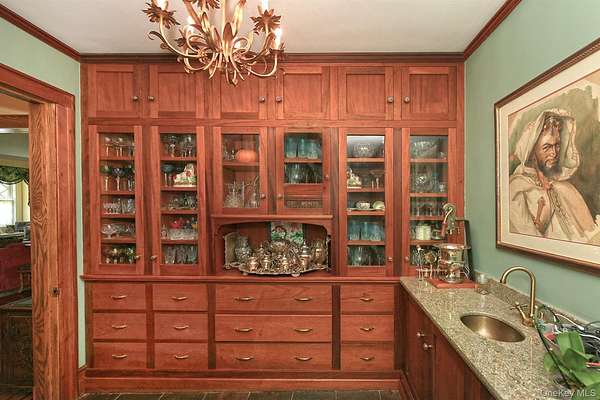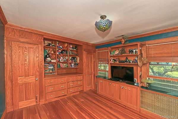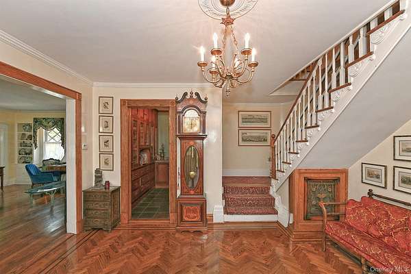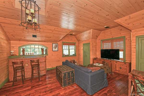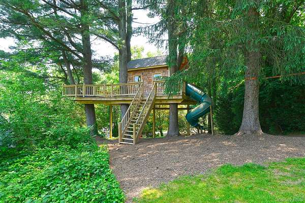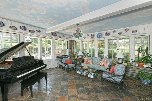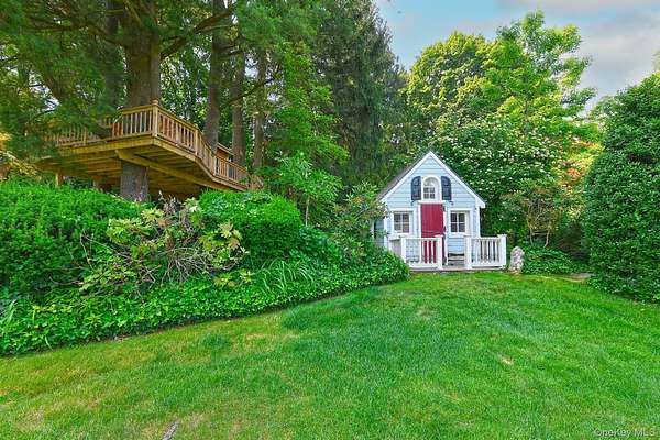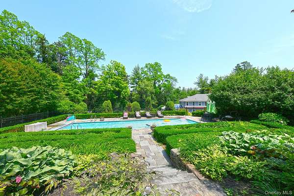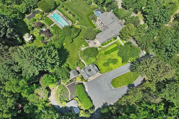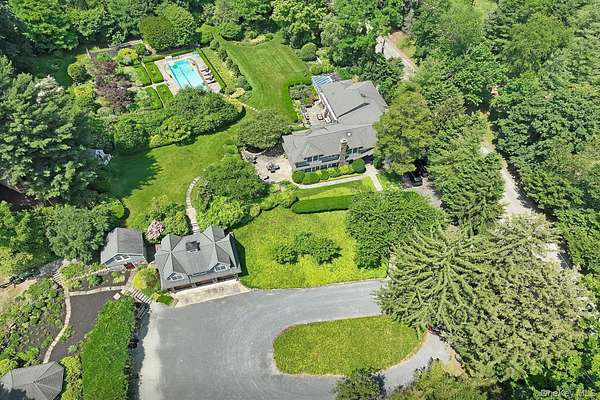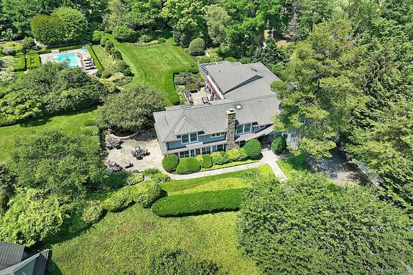 Welcome to 4 Horse Hollow - A Nature Lover's Paradise! Located across from the renowned Creek Club, tucked away on the historic Weir Estate, thoughtfully expanded in 1940, this extraordinary 6-bedroom, 5-bathroom residence is a rare offering that combines timeless craftsmanship, architectural beauty, and exceptional outdoor living. Purchased in 1993 and meticulously maintained ever since, this one-of-a-kind property is surrounded by lush gardens, mature landscaping, and serene outdoor spaces that feel like a private sanctuary. The home's classic cedar siding, slate roof, and fieldstone accents exude warmth and authenticity, while the interior boasts elegant and unique design features throughout. The formal dining room offers a dramatic setting with coffered ceilings and a wood-burning fireplace. The living room also features a cozy wood-burning fireplace, complemented by Marvin windows and doors that bring the outdoors in. The grand foyer features hardwood floors with custom cherry inlay, setting the tone for the craftsmanship found throughout the home. A custom butler's pantry leads into the thoughtfully designed kitchen, updated in 1998 with granite countertops, slate floors and backsplash, a Wolf gas range, Fisher & Paykel double drawer dishwasher, and a walk-in wine refrigerator--perfect for entertaining. The inviting family room features a gas fireplace, while the rich library offers floor-to-ceiling bookcases. A bright conservatory houses an indoor lap pool, extending the luxury lifestyle. Upstairs, the primary suite is a peaceful retreat complete with a spacious dressing room. Outdoor highlights include a heated saltwater pool, koi and frog ponds, a charming treehouse, fig trees, a greenhouse (formerly a water pumping station), arbor with wisteria, multiple patios, and an abundance of curated gardens--making the grounds feel like a botanical dream. The separate office features open living space, a full bathroom, knotty pine wood throughout and operates on its own heating and cooling zones.