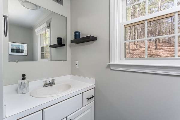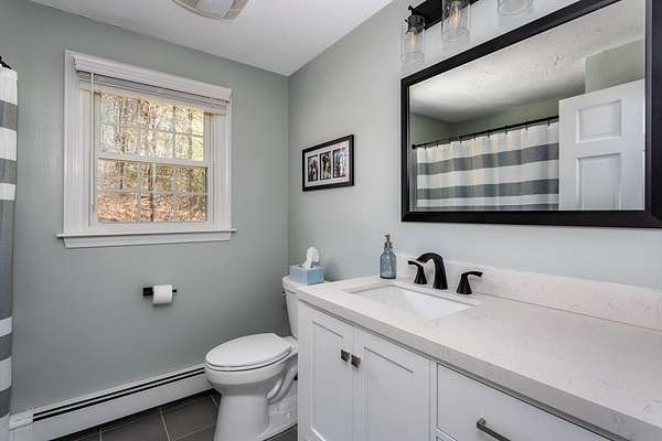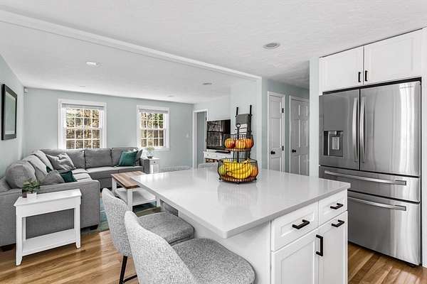 Welcome home to this pristine, updated 3 bdrm, 2 bath gambrel set back and situated on a beautiful 2+ acre private lot. Fully renovated kitchen (23) w/ new appliances, ample cabinet space, quartz counters, custom marble herringbone backsplash & large kitchen island w/ room for 4 bar stools & xtra storage. Kitchen now opens to the FR so the entire area is perfect for entertaining. Lrg front facing room w/ wood burning FP is currently used as a DR but would also serve well as a LR. Rear corner room perfect as an office, den or guest room. 3 ample sized bedrooms & beautifully updated full bath upstairs. Full unfinished lower level offers tons of storage & is ready for your ideas to create your own space. Added bonuses include; newer and refinished hardwoods, newer carpet in one bedroom, fresh interior paint, NEW furnace & hot water heater (24), all appliances included, highly rated school district & just minutes to Stony Brook Sanctuary, Norfolk common & commuter rail. This is it!