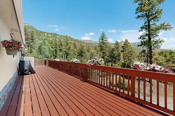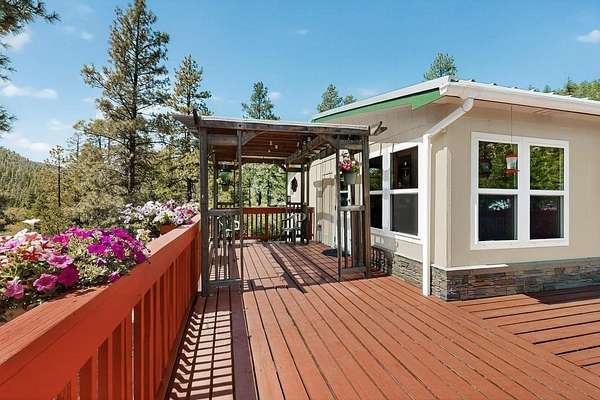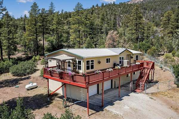 New Price- Come see this Spacious 5 Bedroom Home in Gorgeous Jemez! Top level features bright country kitchen, cheerful living room, fireplace, 3 bedrooms & two full baths. Freshly painted deck with pergola extends living space outdoors where morning coffee, evening meals & starry nights become part of daily life. The custom engineered lower level has its own entrance and was purpose built for strength and efficiency. This level offers two bedrooms, two spacious living areas, and a three quarter bath. Perfect for a second suite, guest wing, studio, or private rental. The 28x60 foam form monolithic foundation with ten foot walls adds long term durability and energy savings. Recent updates improve comfort throughout. Fresh interior and exterior paint, new sinks and faucets, a new primary bath vanity, six new lower level windows, upgraded upper level windows, and a brand new fifteen hundred gallon septic tank. A Whitfield pellet stove provides efficient heat and the oversized garage offers generous room for vehicles, tools, and storage. For animals and outdoor use, the property includes a dedicated half acre corral with feed shed, plus surrounding natural landscape for exploration, gardening, and future ideas. Two combined parcels, 11B and 11D, contribute additional privacy and flexibility. A two hundred twenty outlet is ready for larger projects. The location is rich with recreation. Public lands nearby offer riding, hiking, hunting permitting, Valles Caldera National Preserve provides skiing, fishing, endless trails. The mineral hot springs, restaurants, & shops of Jemez Springs are just minutes away. Access is practical for year round living. The home is near the start of the road which simplifies winter driving. Schools and bus stops are close and Los Alamos is approximately forty five minutes with Albuquerque and the Sunport about an hour away. This is abbsolutely one of the most compelling five bedroom opportunities in the Jemez Mountains.