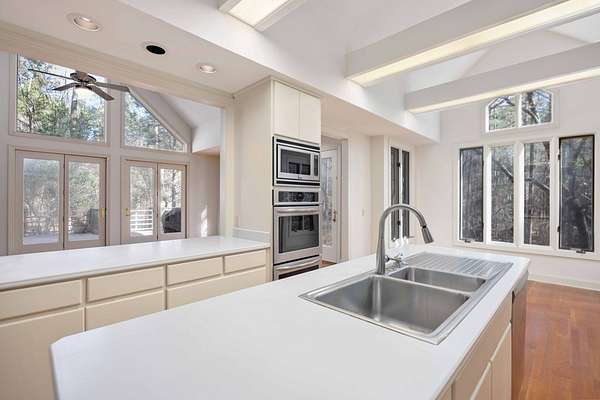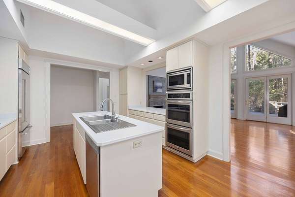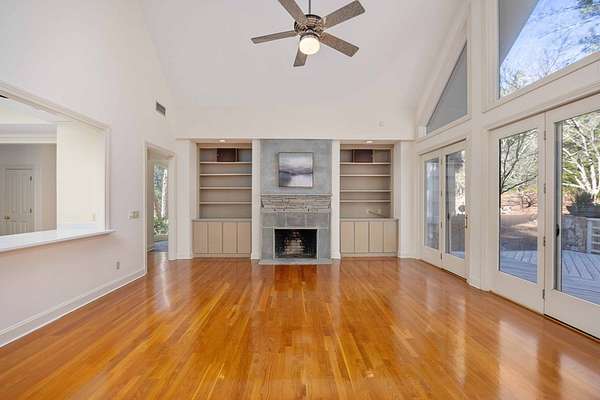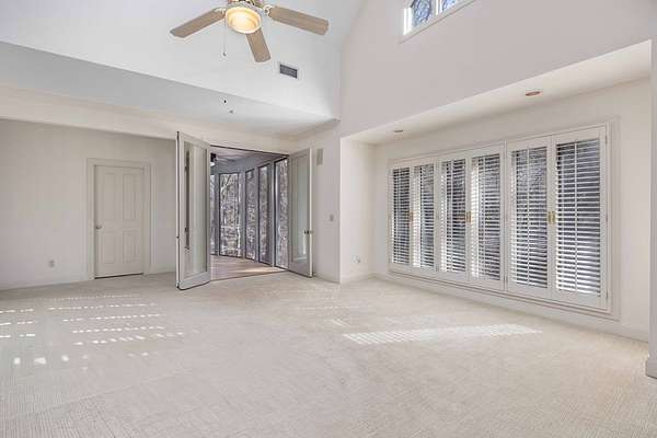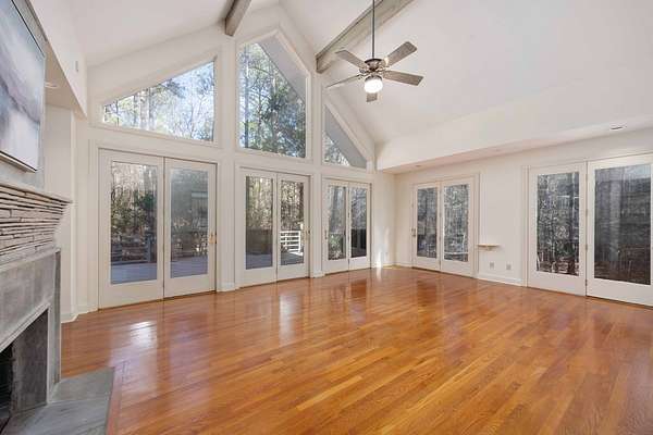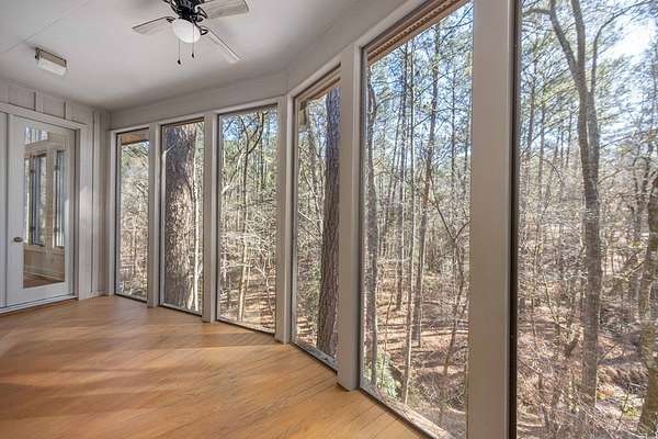Designed and built by renowned Columbus builder Hal Averett, this exceptional residence sits on 5.23 private, wooded acres in the heart of Green Island-your quiet retreat just moments from everything. Flooded with natural light, the home is thoughtfully crafted to frame stunning views of nature from every room, every season. The floor plan offers ease of living and effortless entertaining, with the primary suite conveniently located on the main level along with a guest bedroom and full bath. Inside, you'll find two soaring living spaces, each with masonry fireplaces, creating wonderful gathering areas. The primary suite features two walk-in closets with built-ins and access to a peaceful screened porch overlooking the grounds. The terrace level provides a third living space, plus three additional bedrooms, two bathrooms, and access to a private balcony. Outside, enjoy low-maintenance landscape design, a three-car carport, and the option to convert to a garage if desired. Major updates include a 8-year-old architectural roof installed by Superior Roofing. This desirable section of Columbus is quickly growing-Green Island Grocery and Market, plus additional retail and service shops including a salon, are just moments away. Brookstone School, serving K-12 students, is only 2.5 miles from the driveway. Green Island Country Club offers golf, tennis, pickle ball, pool, plus many dining option. Your private retreat in Green Island awaits-schedule your showing today!