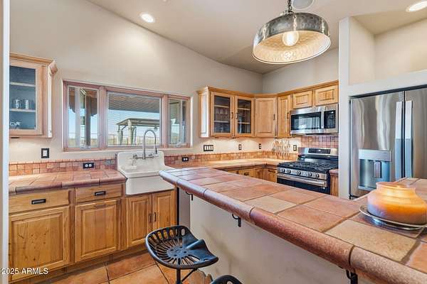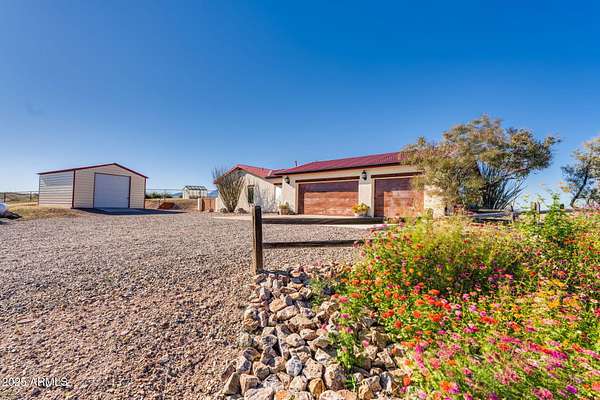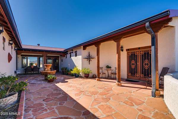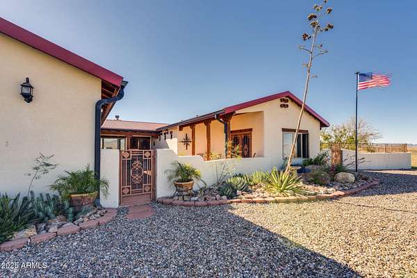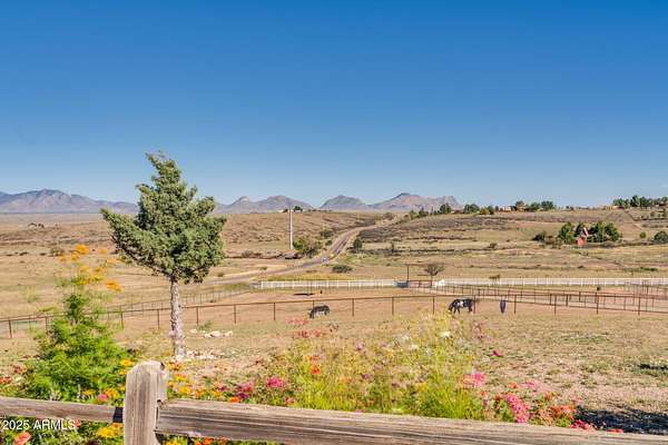 Do you dream of a custom luxury home paired with an amazing equestrian facility? Located In Sonoita, in the heart of Arizona's stunning wine country, the high-desert elevation of nearly 5,000 feet gifts you a perfect climate with mild summers that rarely exceed 100 degrees. With panoramic views for days across rolling grasslands and majestic mountain ranges, welcome to 4 Mustang Trail. This exquisite 3-bedroom, 3-bathroom stunner is a rare find, perfectly positioned on 8+ acres and offering a masterful blend of refined living and a professional-grade horse property. From the dedicated 40x60 horse stalls to the 5 fully fenced acres with top rail no climb the property also shows off its massive 20x25 custom shop. 4 Mustang Trail has been meticulously designed for those who appreciate space, custom craftsmanship, and the freedom of rural living without sacrificing convenience.This beautifully designed three-bedroom, three-bath custom home blends timeless architecture with inviting comfort. At the heart of the property lies a serene courtyard, complete with a bubbling fountain the perfect setting for morning coffee or evening gatherings under the stars. Inside, an open great-room design creates a bright, spacious flow ideal for entertaining or relaxing. High ceilings, rich finishes, and thoughtfully placed windows enhance the sense of warmth and light throughout. A private library nook offers a quiet retreat for reading or reflection, adding to the home's refined yet welcoming atmosphere. This incredible back yard was designed for year-round entertaining. The area seamlessly extends your home's footprint, providing the perfect setting for relaxing evenings or large gatherings. For the hobbyist or collector, not only does this home have a three car garage but also has a substantial 20x25 shop with custom shelving that offers secure storage, a dedicated workspace, or a haven for your projects. This 20x25 shop is wired with three 110 circuits and one 220 circuit, (the 220 is wired but not hooked up). In addition, the property is equipped with dedicated, easily accessible RV/boat parking, ensuring all your toys and equipment have a safe, organized home. With amazing location, cooler temperatures, a gorgeous welcoming home and amenities to fit most any hobby, what are you waiting for?