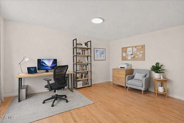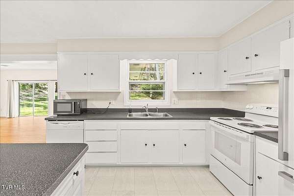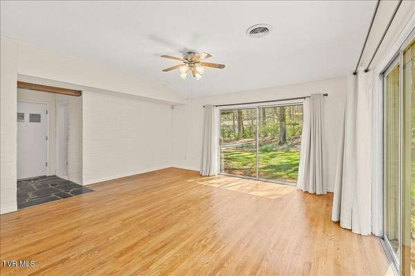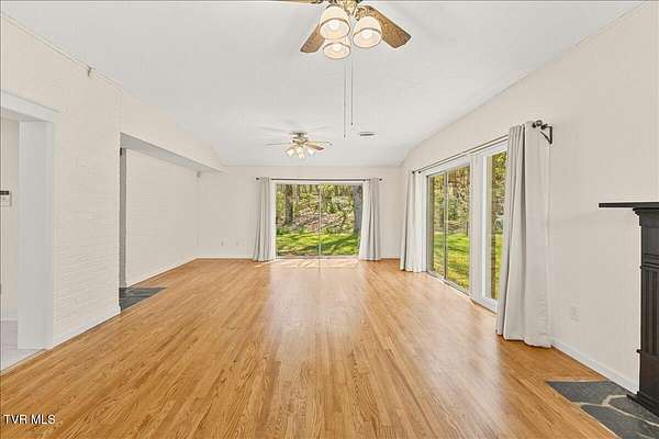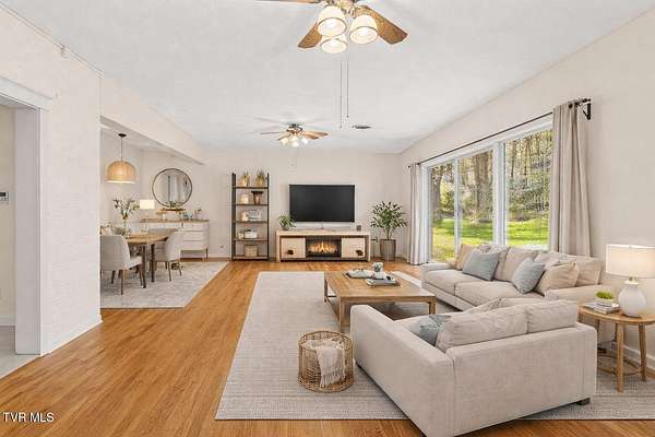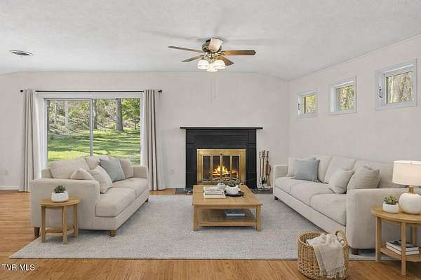 EXCEPTIONAL OPPORTUNITY - This SOLID BRICK RANCH IS SITUATED ON 1.5 ACRES within a tranquil cul-de-sac in an established neighborhood. The single-level residence offers over 1,900 finished square feet and includes three bedrooms, one and a half bathrooms, a two-car main level garage, as well as an unfinished walkout basement. The main level features a formal living room, office or study, a spacious eat-in kitchen with an island, a combined great room and dining area complete with a brick fireplace, a primary bedroom with en-suite half bath, two additional bedrooms, a hall bathroom, and a generous laundry room. The full walkout basement provides ample storage space or options for future expansion. Outdoor amenities include a covered front porch, flat backyard, mature landscaping and trees, and 1.5-acre lot offering privacy in a park-like setting. Additional highlights comprise freshly painted interiors in neutral tones, hardwood flooring, new LVT flooring in the kitchen and bathrooms, new refrigerator, dishwasher and range and all appliances--including washer and dryer--conveying with the sale. This property is ideally situated, just minutes from ETSU, VA, JC Medical Center, Quillen College, Milligan University, as well as downtown shopping and dining option.
