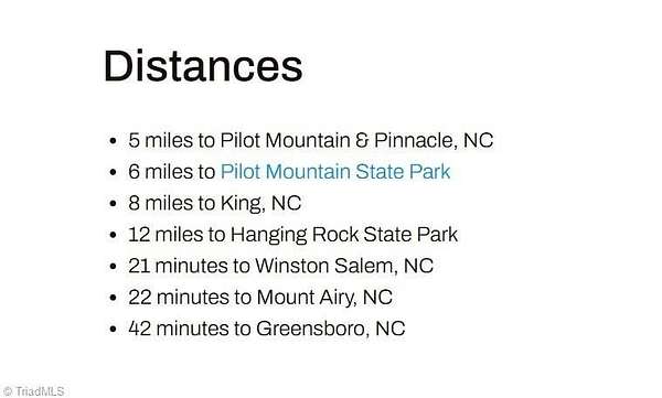 Rare Opportunity. Properties of this caliber are incredibly rare in Stokes County. Part of an exclusive 110-acre, 9-lot community (additional lots available 3.6–31 acres)—all protected by seller-imposed covenants to preserve natural beauty, aesthetics, and rural character. This 3.63± acre building lot just outside Pinnacle features 400± feet of paved public road frontage, power, fiber internet, percable soils, a well, and a metal roof shelter. The front field is essentially flat—ideal for your homesite—while Sauratown Mountain provides a stunning backdrop. Enjoy direct access to the 27+ mile Sauratown Mountain Trail (public hiking/horseback riding). 2.4 acres open land w/1.2 acres wooded. Just 21 minutes to Winston-Salem, 7 minutes to Pilot Mountain. Visit the listing agent's website for details, interactive map, attachments, and video tour.