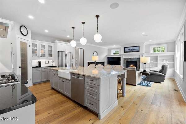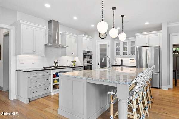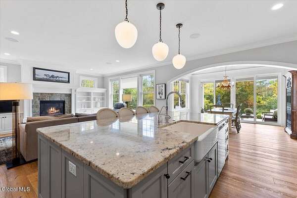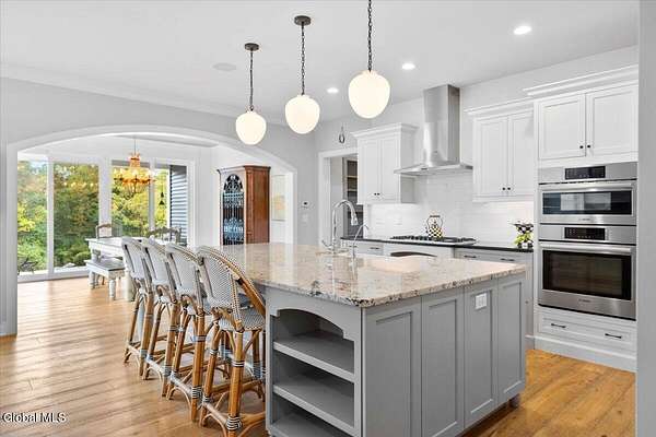 Fabulous Find! A rare opportunity to own a John Witt masterpiece-built by the award-winning custom builder and offering timeless design with every modern comfort. This stunning 9-year-old residence showcases exceptional craftsmanship throughout, featuring 5 bedrooms, 3 full baths, and a 3-car garage. The sun-drenched great room boasts walls of windows overlooking the private, picturesque 1.5-acre yard. The gourmet kitchen is a chef's dream, complete with a large island, custom cabinetry, granite countertops, top-of-the-line appliances, and a walk-in pantry. The family room offers custom built-ins, while the magnificent dining area is surrounded by windows on three sides. Retreat to the luxurious primary suite with a spa-like bath featuring a soaking tub and a beautifully crafted custom closet. A Sonos system enhances the primary suite, great room, home theatre, and back porch. Additional features include a whole house generator for peace of mind in every season. Outdoors, entertain guests in the exquisite yard with a covered porch and a custom patio, perfect for gatherings year-round.