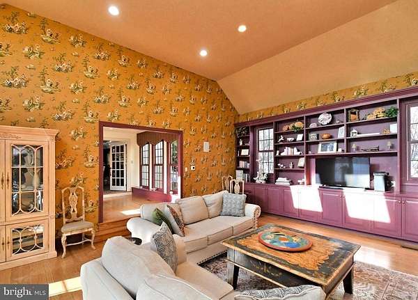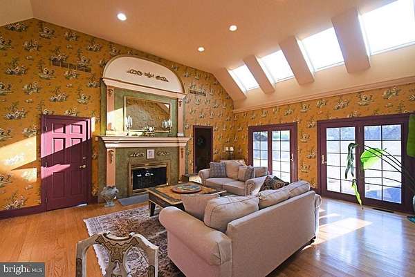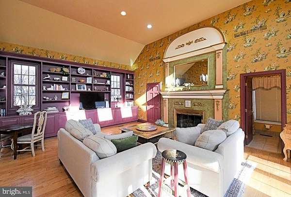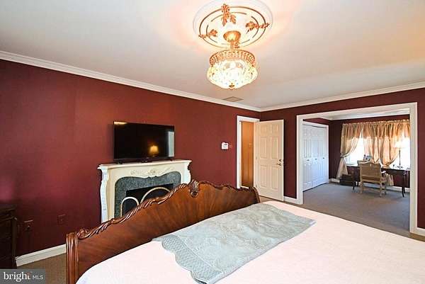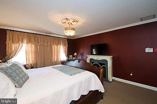 Nestled in a peaceful cul-de-sac on 3.4 acres, this stunning brick front colonial welcomes you with a long driveway that leads to a graceful circular drive surrounded by lush landscaping. This home offers exceptional space, beginning with formal living and dining rooms and flowing into a beautifully remodeled kitchen with large center island, cozy breakfast area and wood burning fireplace. A bright sunroom an a large family room also featuring a wood fireplace provide inviting spaces to relax, while an impressive great room showcases custom bookshelves and its own wood burning fireplace. French doors open to a custom deck overlooking an inground pool, pond and professional landscaping. Perfect for entertaining or quiet evenings outdoors. With a full bath and dedicated office space on the main level, plus a 3 car garage On the second level, a grand turned staircase leads to a luxurious primary bedroom, complete with a cozy sitting room and a beautifully remodeled bath featuring a whirlpool tub and a separate shower, along with ample closet space. The upper floor also includes 3 additional bedrooms and a remodeled hall bath. The home also boasts a full basement with a separate laundry room, adding even more convenience and functionality to this exquisite home. This home blends elegance and comfort in a truly special setting!
