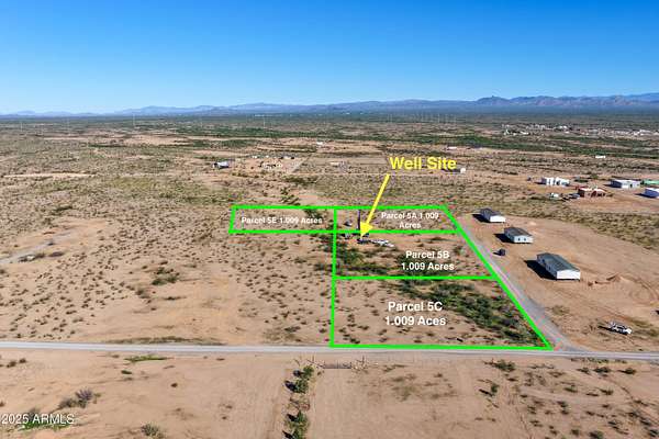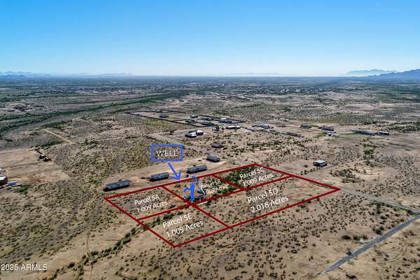 Est $2,516/moThis 4.036-acre property in Wittmann is made up of four 1.009-acre parcels (APNs: 503-30-393B, C, A, E) This build ready property includes a brand new productive well with 620 ft of PVC. Terrain is flat with minimal wash issues. Power is within 300 ft, and roads provide good access. No flood issues and no Luke Air Force Base restrictions. Owner is motivated for a quick sale. An additional 2.018-acre parcel adjacent to the property is also available. (Parcel 5, A, B, C, E per attached survey)